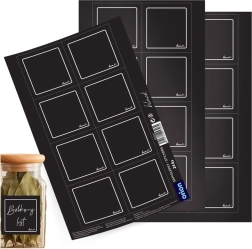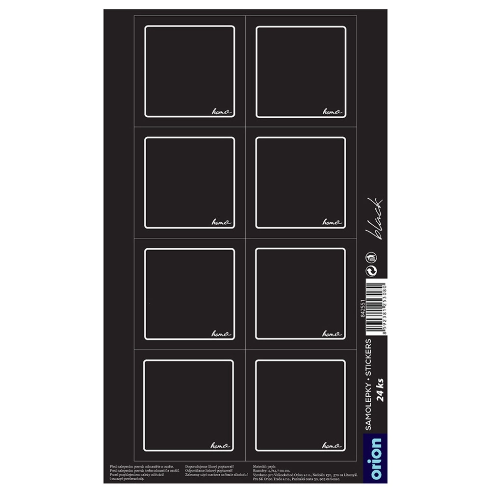 Praktische set van 24 zelfklevende etiketten in een elegante zwarte kleur voor overzichtelijke labeling van potten, flessen en voorraadbussen. Elk etiket heeft een formaat van 4,7 × 4,7 cm, is gemaakt van gelamineerd papier en dankzij de zelfklevende laag is er geen lijm nodig. De ruimte voor je eigen opschrift zorgt voor leesbaarheid en orde in de voorraadkast en keuken. Origineel product van het merk ORION.