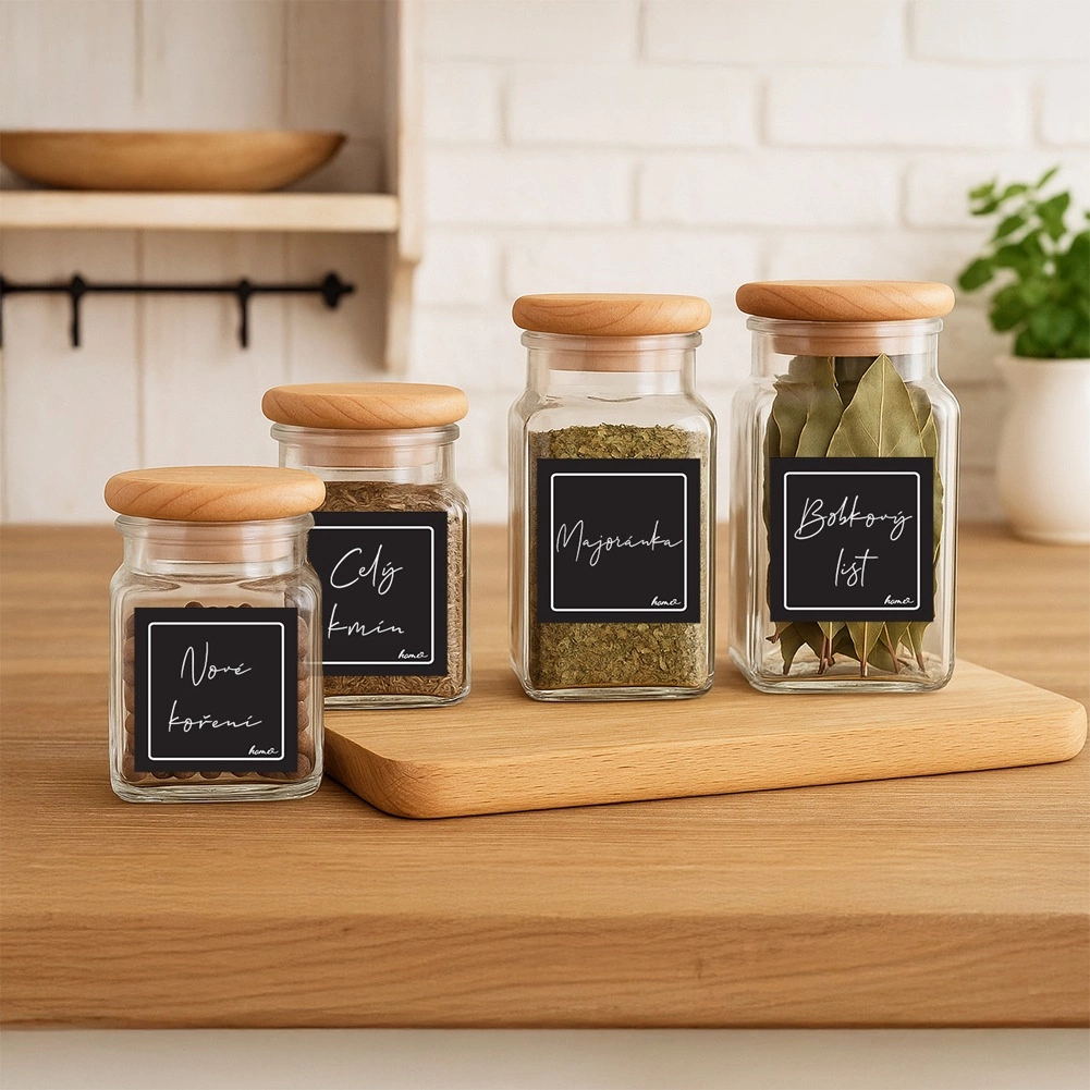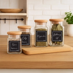 Houd stijlvol orde in je voorraadkast. Zwarte zelfklevende etiketten zijn geschikt voor zelfgemaakte conserven, kruiden, droge waren en zelfs cadeauverpakkingen. Het gelamineerde oppervlak is beter bestand tegen vuil en elk etiket biedt een gereserveerde ruimte voor naam, samenstelling of datum.