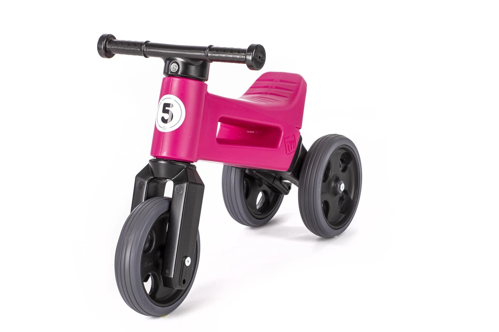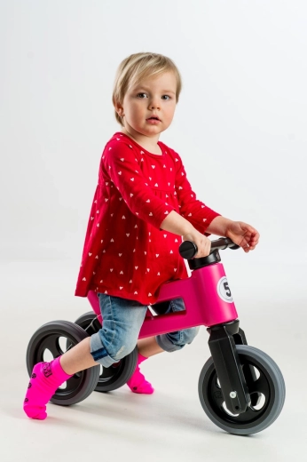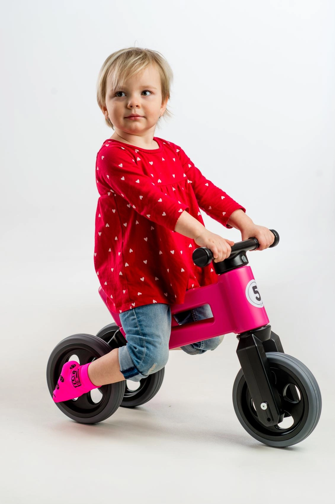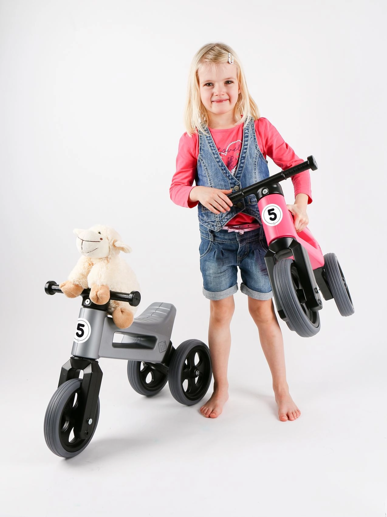 De FUNNY WHEELS Rider Sport 2-in-1 loopfiets brengt kinderen plezier in beweging en ouders een slimme oplossing voor langere tijd. Dankzij het modulaire systeem verander je in een paar minuten de stabiele driewieler in een wendbare tweewieler om balans te trainen. Twee zadelposities (28/30 cm) passen zich aan de groei van het kind aan.