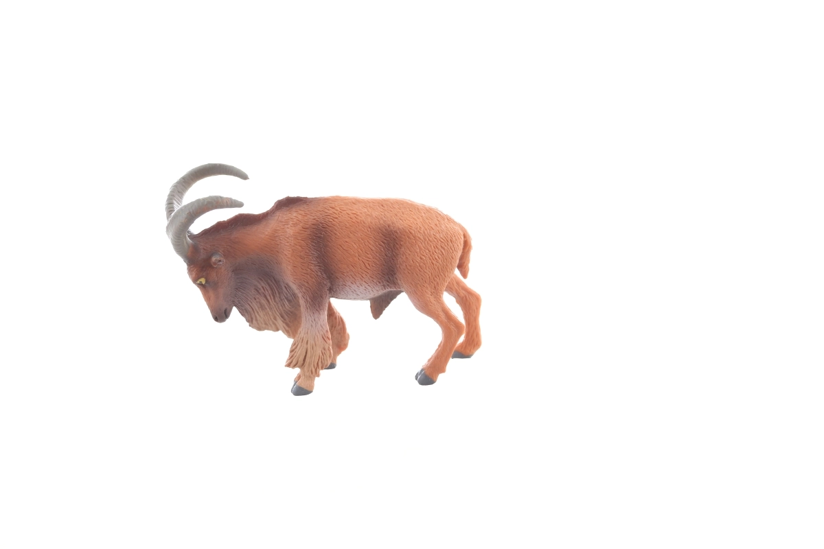 Levensechte vachttextuur, nauwkeurige kleuring en karakteristieke gebogen hoorns geven het figuur authenticiteit voor spel en educatie.