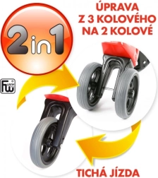 Begin in de stabiele driewielconfiguratie en schakel op elk moment over naar de tweewielversie om evenwicht te trainen. In de verpakking zitten inbussleutels en een kortere as.