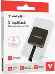 Verbatim SnapBack is een moderne magnetische externe SSD die dankzij MagSafe-compatibiliteit stevig aan de achterkant van je telefoon vastklikt. De stabiele bevestiging zonder houders en kabelwirwar maakt hem perfect voor opnames op locatie, live-uitzendingen en lange fotosessies. Ondersteuning voor Apple ProRes 4K/60 fps maakt het mogelijk om rechtstreeks op de schijf op te slaan en zo telefoongeheugen vrij te maken.