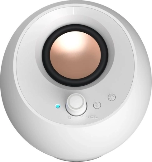 De compacte 2.0-luidsprekers Creative Pebble Pro in het wit bieden krachtig en helder geluid tot 10 W RMS (20 W piek), USB‑C‑voeding, Bluetooth 5.3 voor draadloze weergave en configureerbare RGB‑verlichting. Dankzij de BassFlex-technologie leveren ze verrassend diepe bassen, zelfs bij laag volume, Clear Dialog-verbetering benadrukt spraak, en de 45° gekantelde drivers richten het geluid recht op jou.