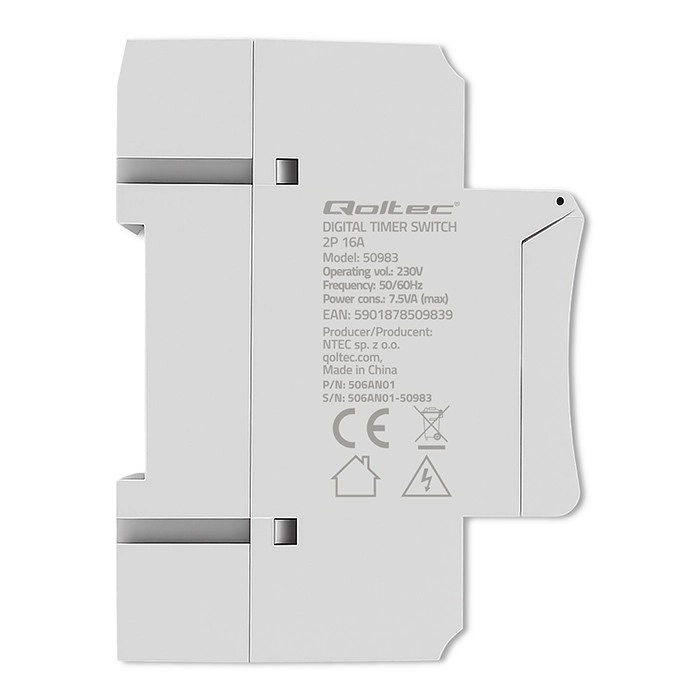 Het apparaat heeft een duidelijk afleesbaar, verlicht LCD voor eenvoudige configuratie en statuscontrole. De ingebouwde back-upaccu, die tijdens bedrijf wordt bijgeladen, bewaart uw instellingen tot 180 dagen zonder voeding. Verder is er een handmatige modus voor permanent aan/uit, een willekeurige modus voor aanwezigheidssimulatie en een automatische wekelijkse tijdaanpassing van ±30 s voor langdurige nauwkeurigheid.