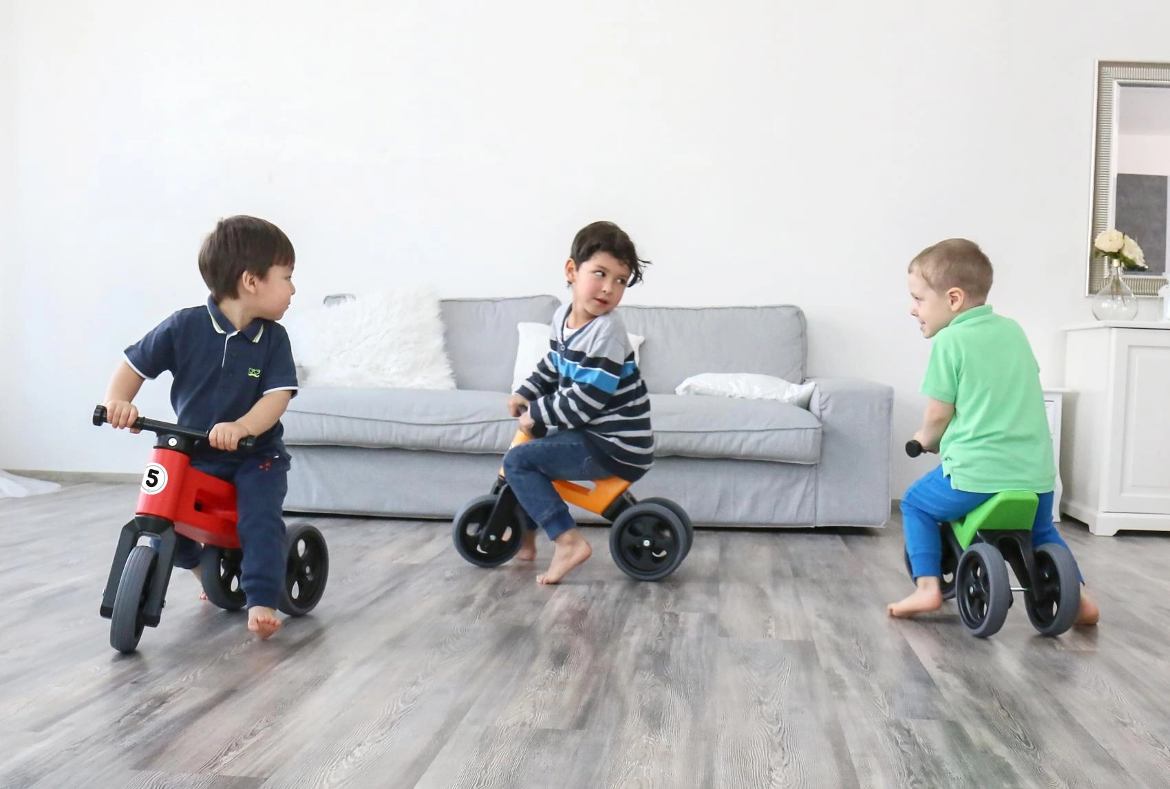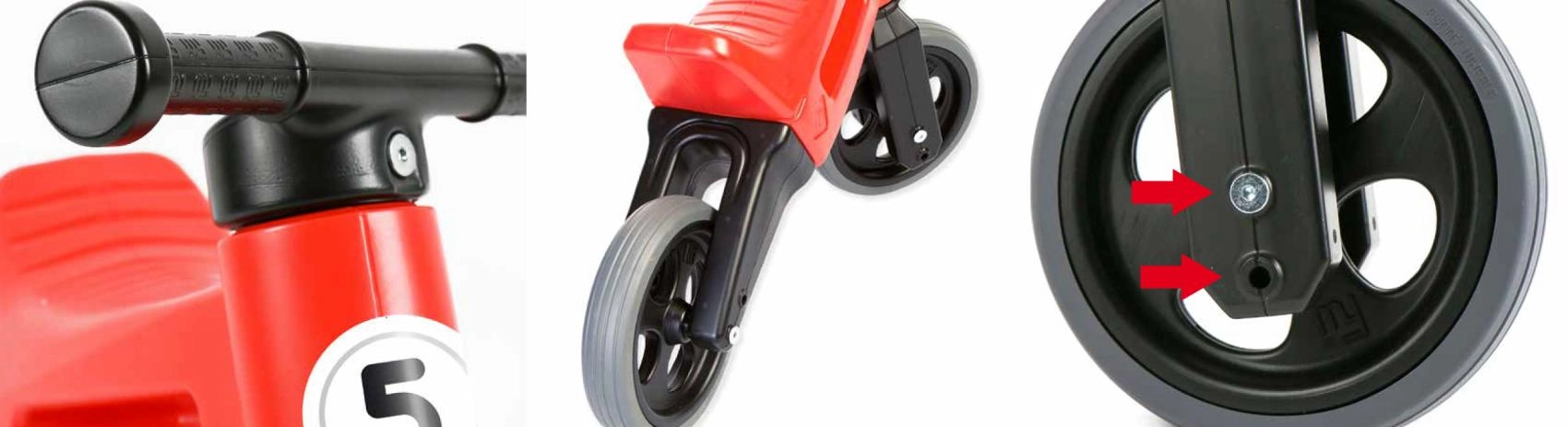 In enkele minuten verander je een stabiele driewieler in een tweewielige balansloopfiets. Ideaal als overgang naar de eerste fiets.
