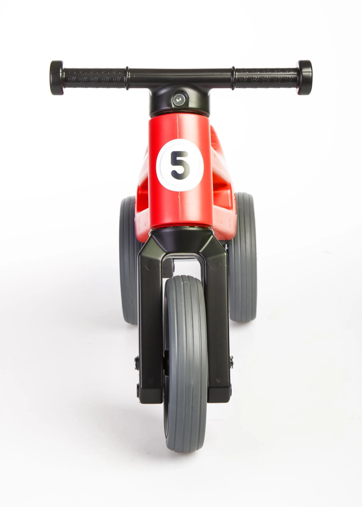De lichte en duurzame loopfiets FUNNY WHEELS Rider Sport 2-in-1 groeit met je kind mee: je zet hem eenvoudig om van een driewieler naar een tweewieler en stelt twee zadelhoogtes in. Stille, antislipbanden, veilige stuurgreepuiteinden en een begrensde stuurhoek zorgen voor stabiliteit en veiligheid vanaf 18 maanden.