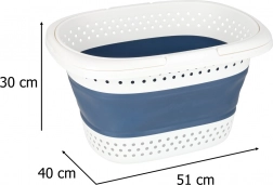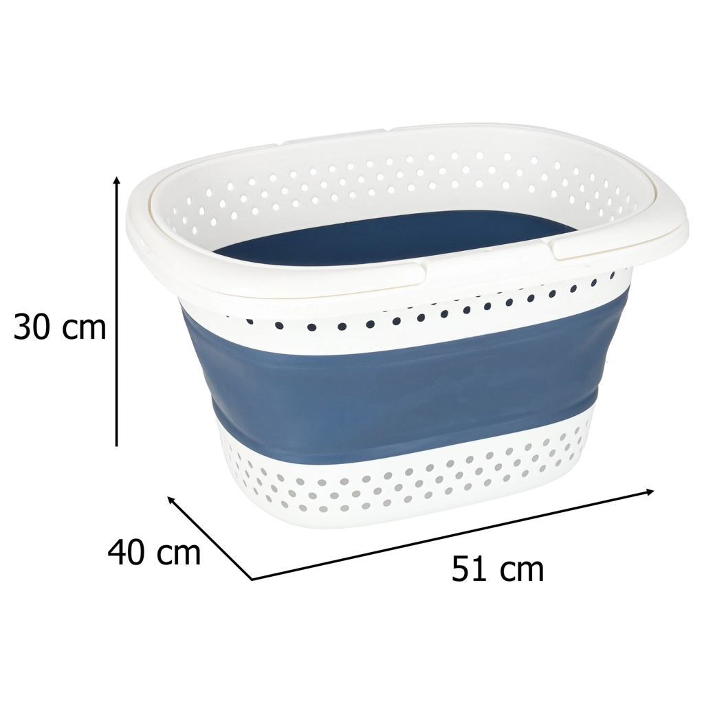 Deze grote maar opgevouwen compacte wasmand biedt een slimme oplossing voor het dagelijks sorteren en dragen van wasgoed. De flexibele kern van duurzame siliconen maakt snel plat opvouwen mogelijk, terwijl de stevige rand en bodem de vorm behouden tijdens gebruik. Dankzij de geperforeerde wanden circuleert de lucht en gaat de was niet muf ruiken.