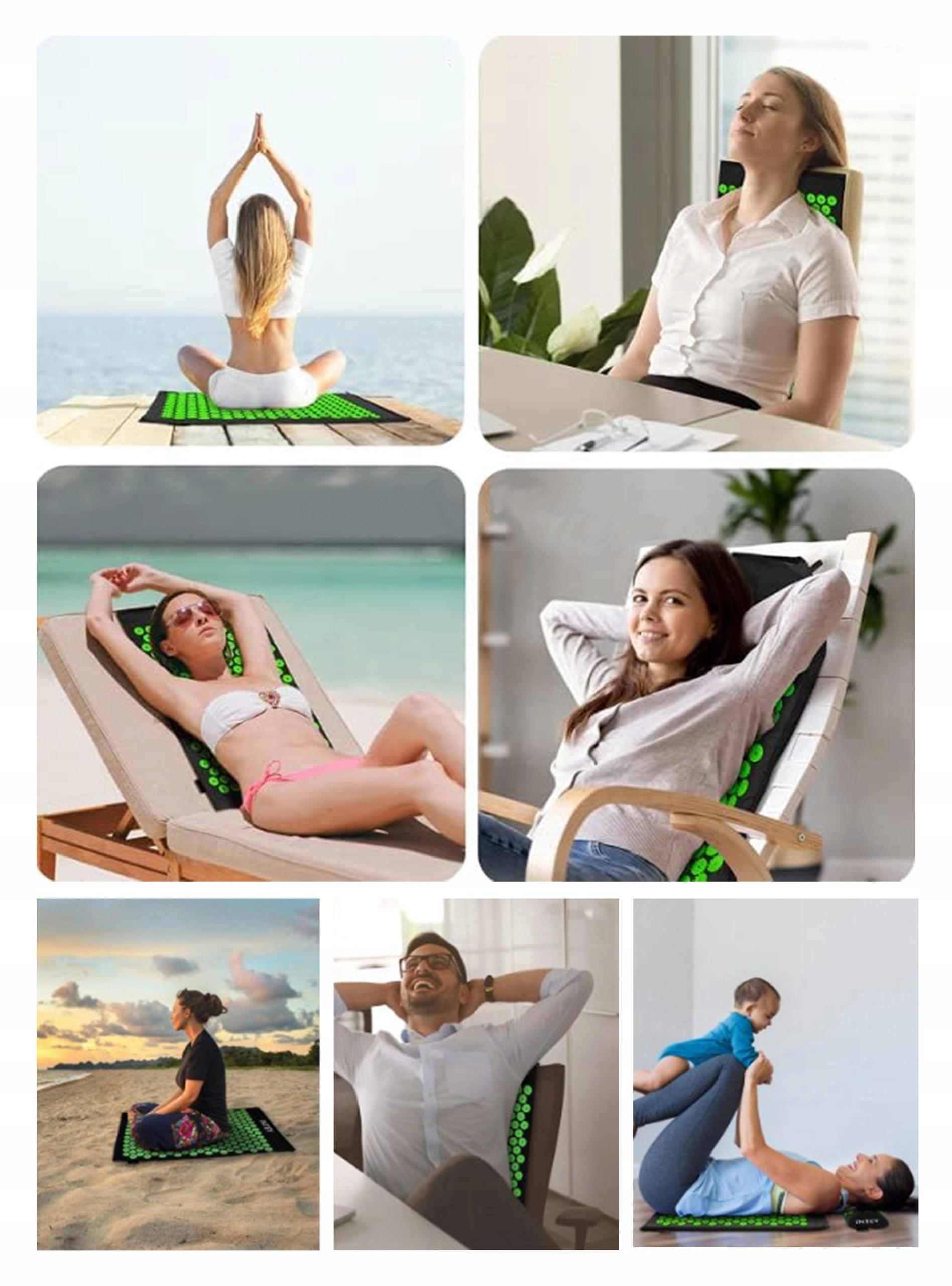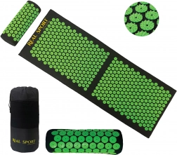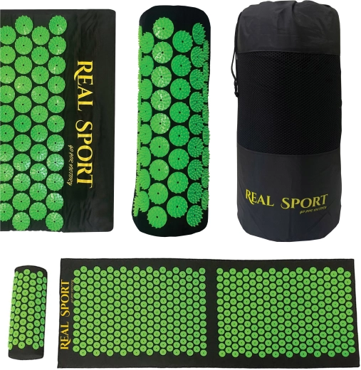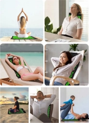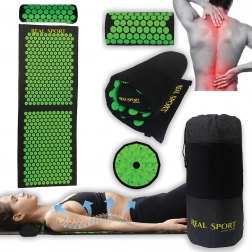 De grote acupressuurmat aangevuld met een ergonomisch kussen richt zich op kritieke zones – de hele rug, nek en trapezius voor een complete ontspanning.