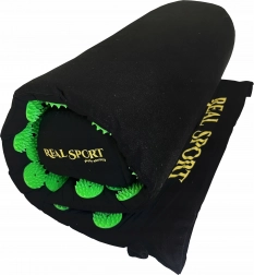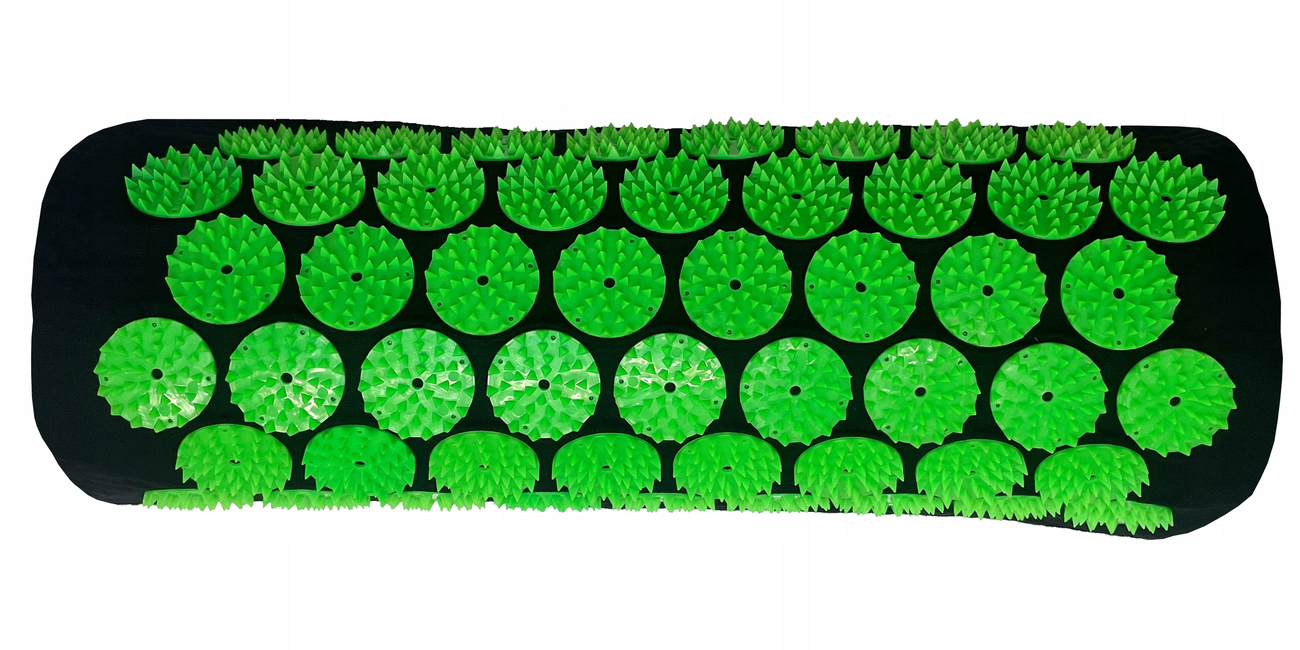 Dichte kunststof rozetten met puntjes verdelen de druk gelijkmatig, stimuleren de doorbloeding en helpen stijfheid en spierpijn te verminderen.