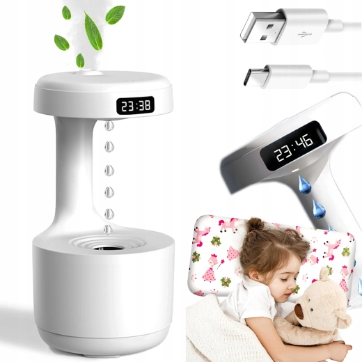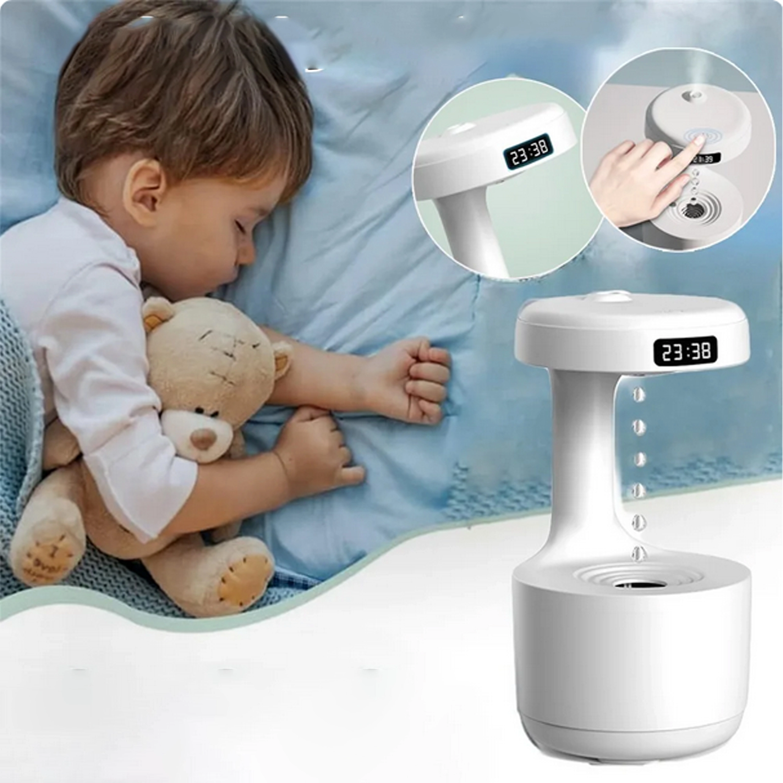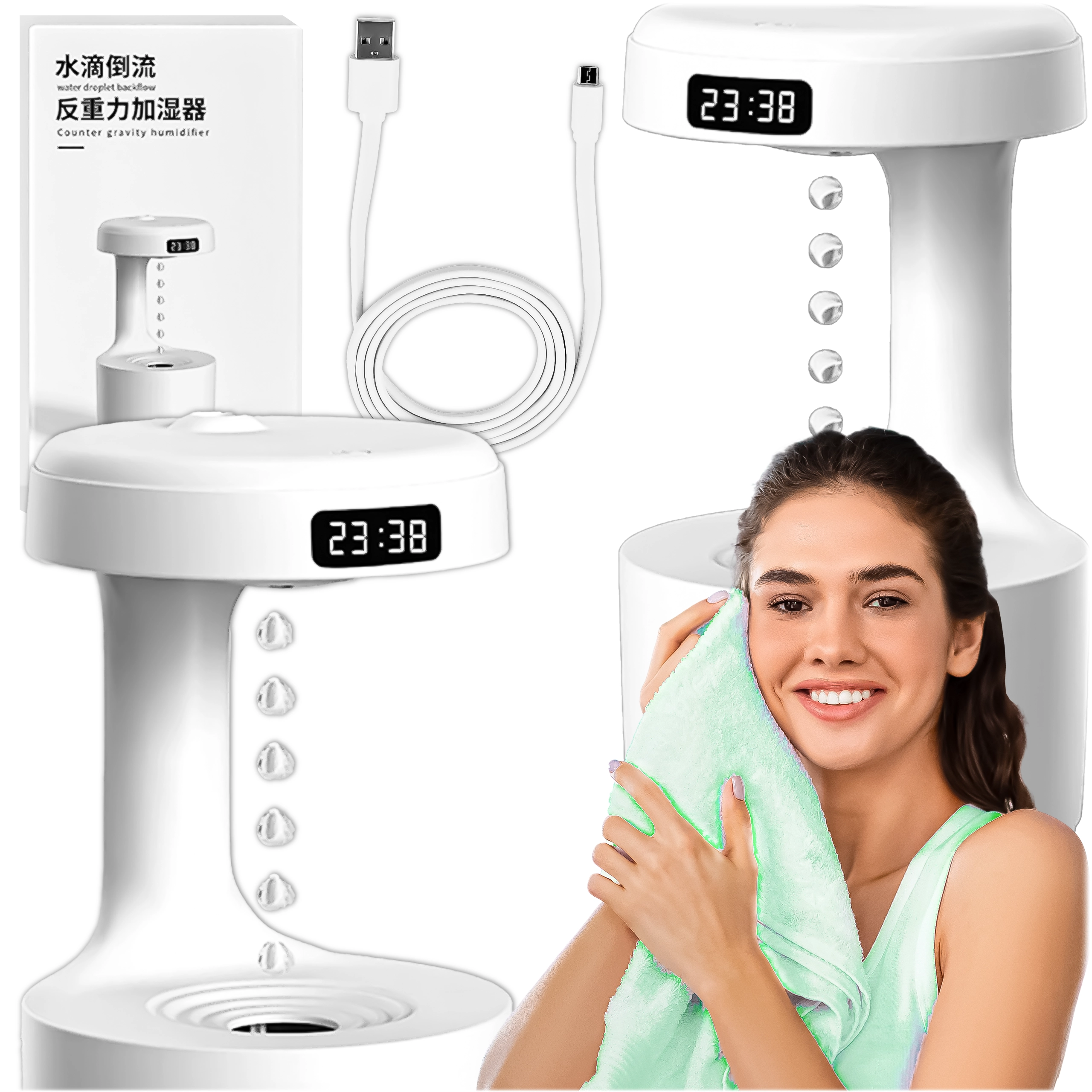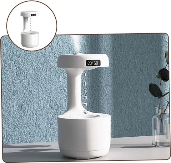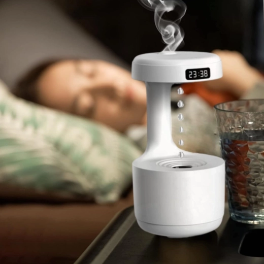 De antizwaartekracht-luchtbevochtiger biedt het indrukwekkende visuele effect van “stijgende druppels” en verhoogt tegelijk doeltreffend de luchtvochtigheid in huis. Dankzij geavanceerde technologie creëert hij een fijne nevel die helpt droge lucht te verminderen, geïrriteerde slijmvliezen te verzachten en het ademen overdag en ’s nachts te vergemakkelijken. Het geïntegreerde LED-display toont tijd en status, terwijl de stille werking de slaap niet verstoort.