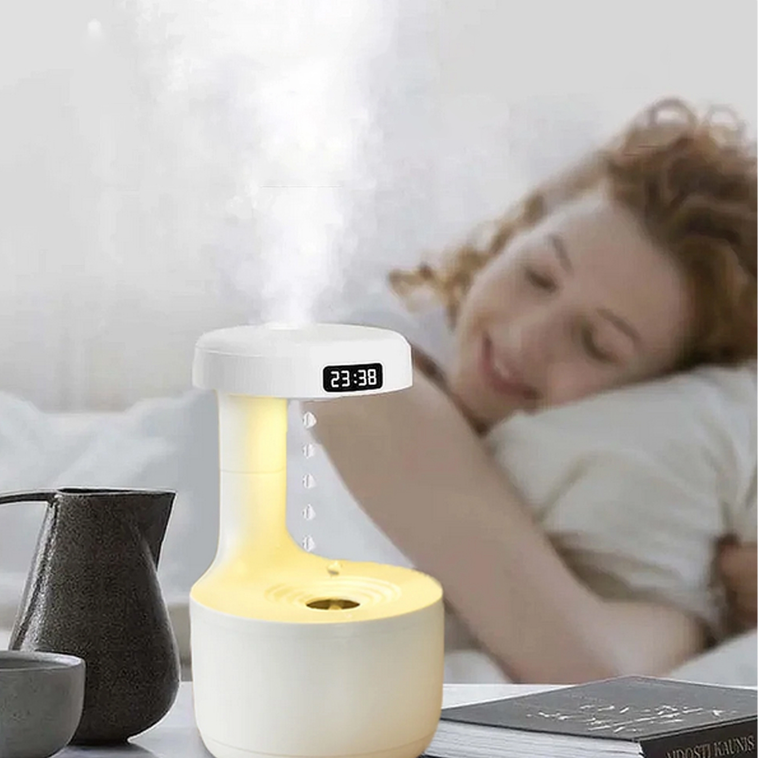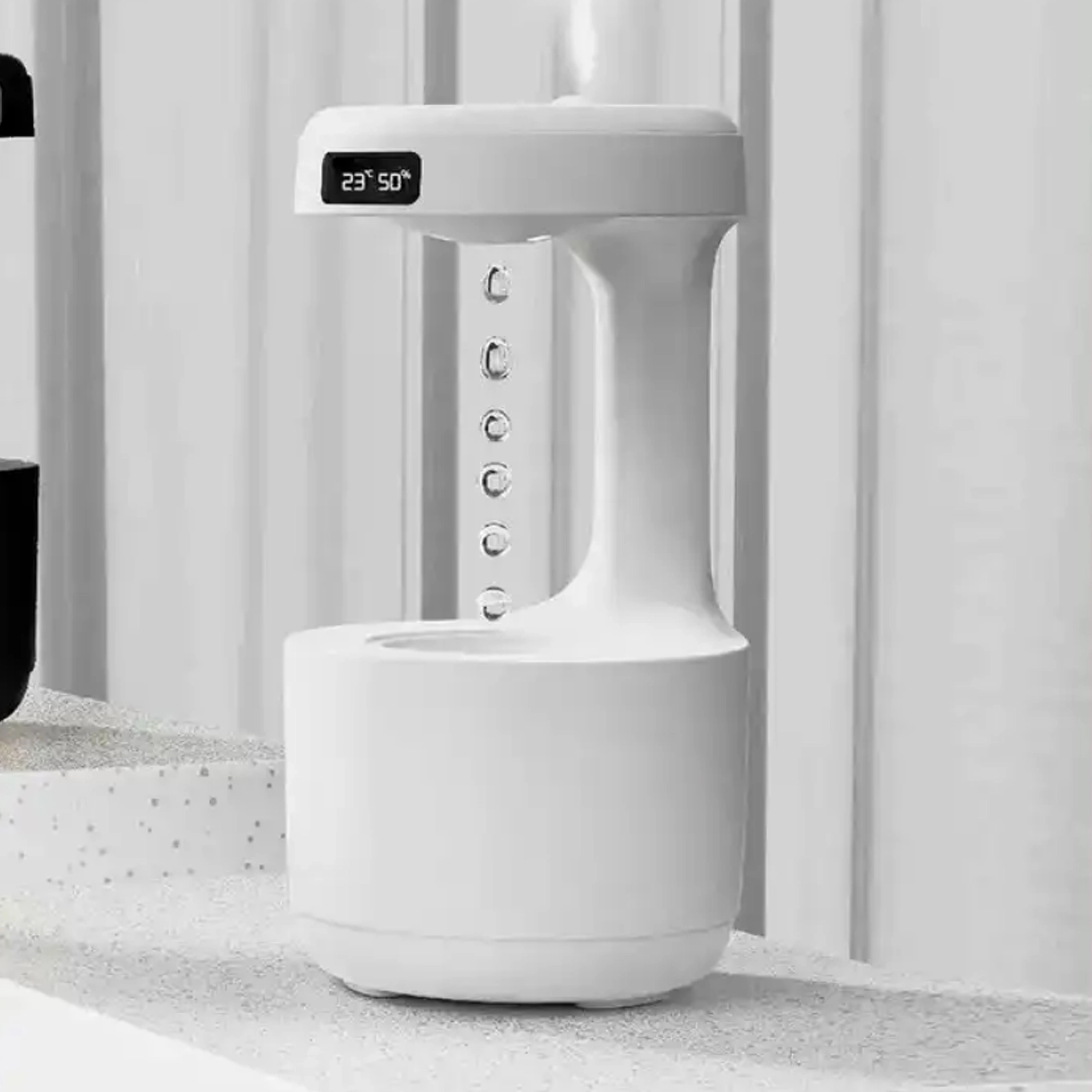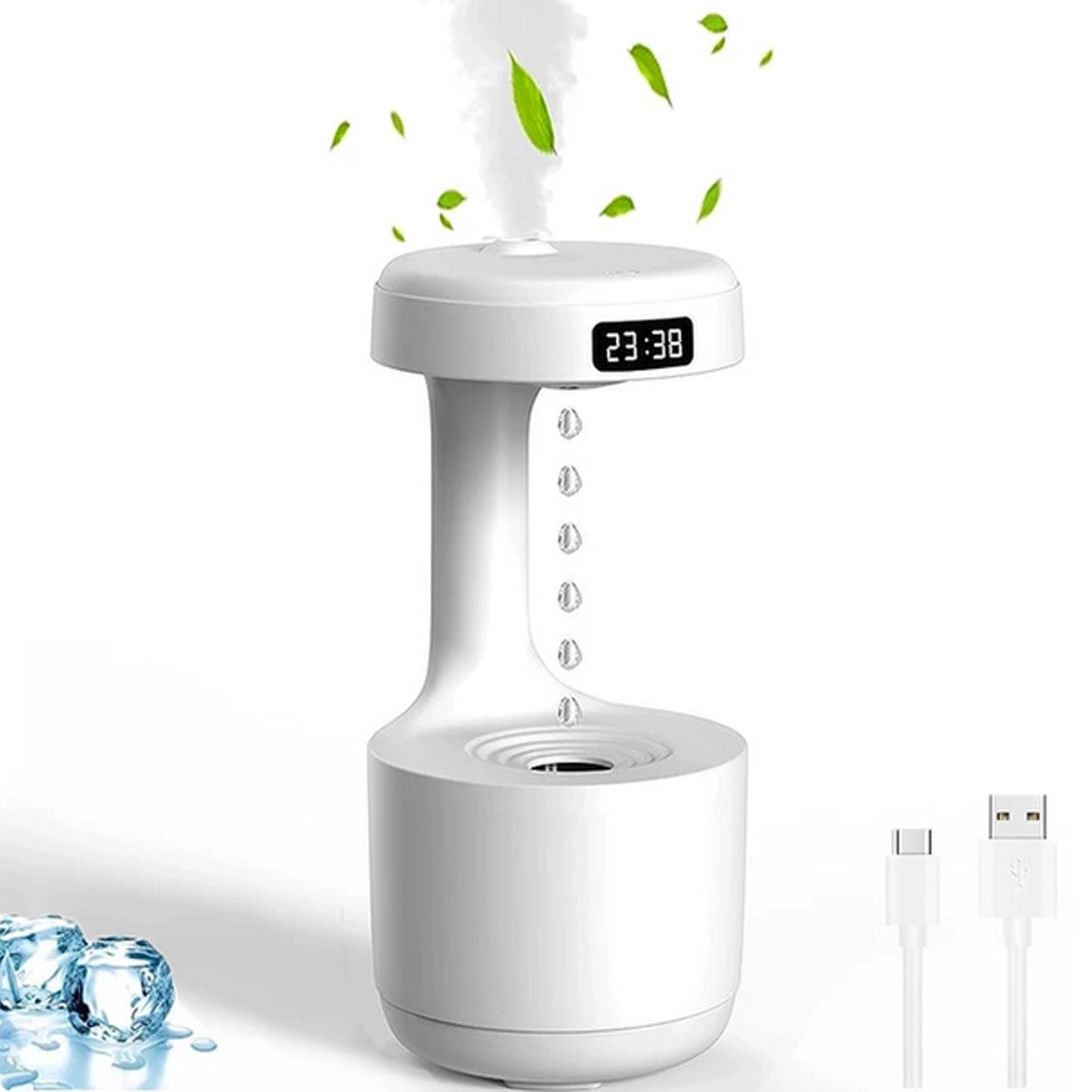 De antizwaartekracht-luchtbevochtiger biedt het indrukwekkende visuele effect van “stijgende druppels” en verhoogt tegelijk doeltreffend de luchtvochtigheid in huis. Dankzij geavanceerde technologie creëert hij een fijne nevel die helpt droge lucht te verminderen, geïrriteerde slijmvliezen te verzachten en het ademen overdag en ’s nachts te vergemakkelijken. Het geïntegreerde LED-display toont tijd en status, terwijl de stille werking de slaap niet verstoort.