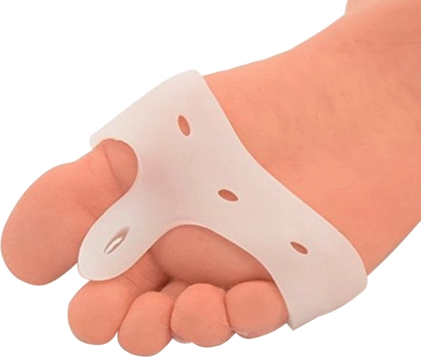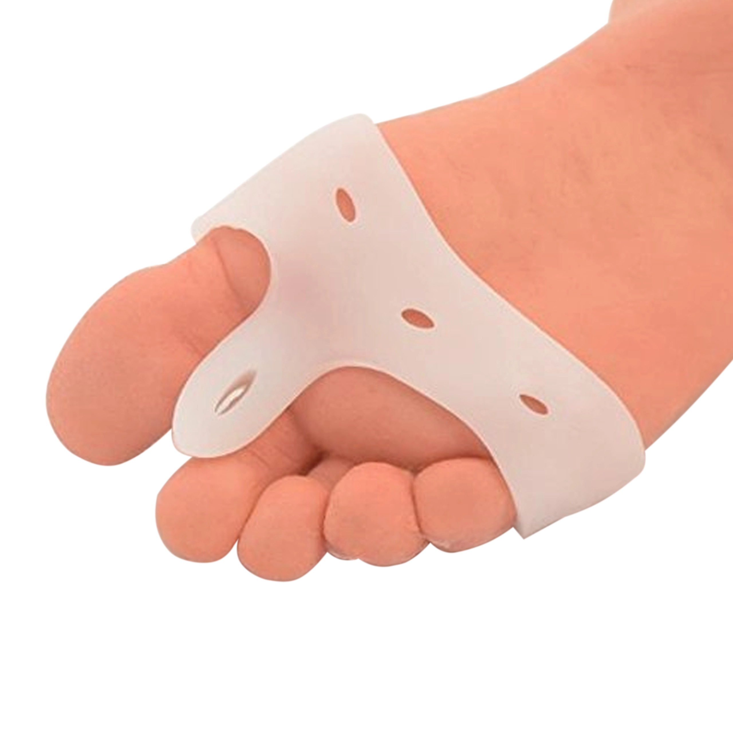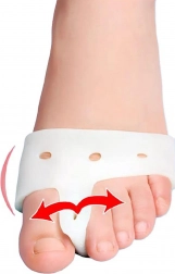 Praktische siliconen hulp voor comfort tijdens het lopen en bij dagelijks dragen van schoenen. De separator vergroot zachtjes de ruimte tussen de grote teen en de tweede teen, wat de juiste teenstand ondersteunt en de druk op het grote teengewricht vermindert. Zachte, flexibele siliconen passen zich aan de vorm van de voet aan en zorgen direct voor verlichting van wrijving en drukplekken.