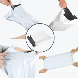De buitenzijde is elegant wit voor een nette uitstraling, de binnenzijde is ondoorzichtig voor discretie van de inhoud. De zakken zijn licht, wat helpt de verzendkosten te verlagen, en blijven toch uitzonderlijk bestand tegen de belasting in de logistiek.