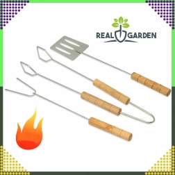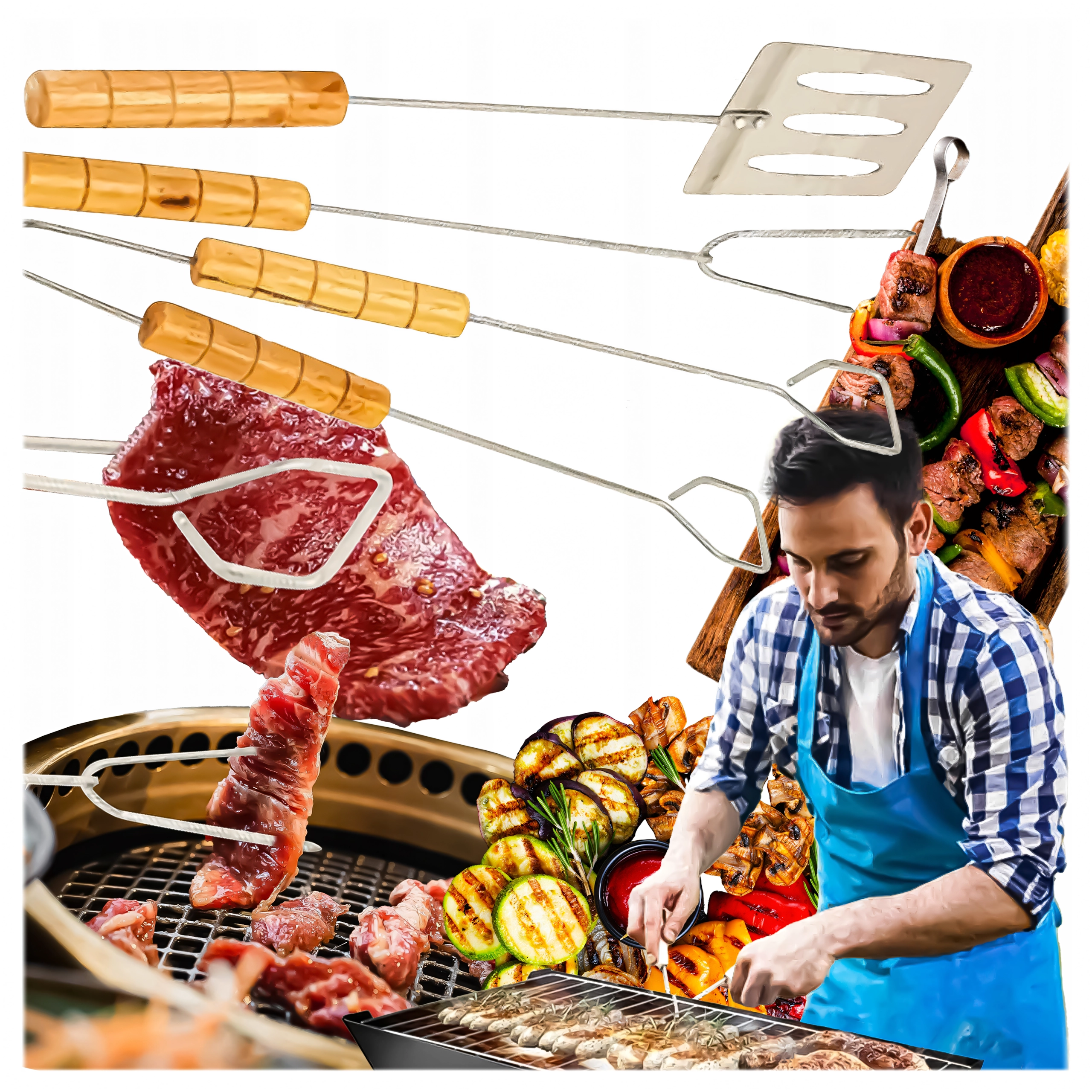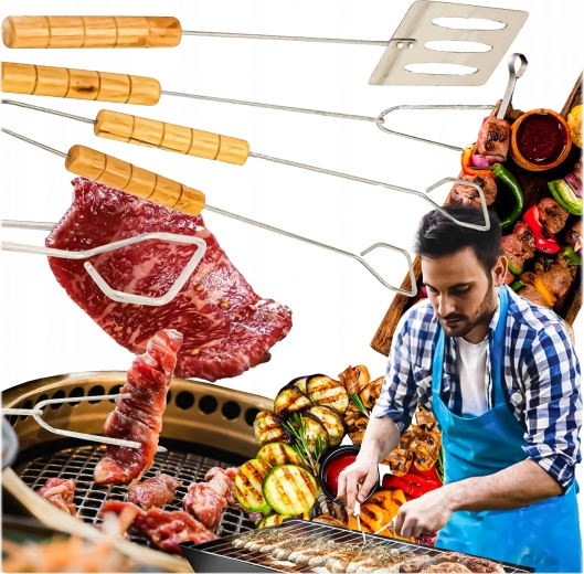 Deze veelzijdige set is ideaal voor elke barbecue-liefhebber. Hoogwaardig roestvrij staal garandeert duurzaamheid en eenvoudig onderhoud, terwijl houten, ergonomisch gevormde handgrepen comfort bieden, zelfs bij langdurig gebruik. Bereid burgers, spiesen of groenten als een professional – eenvoudig en overzichtelijk.