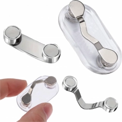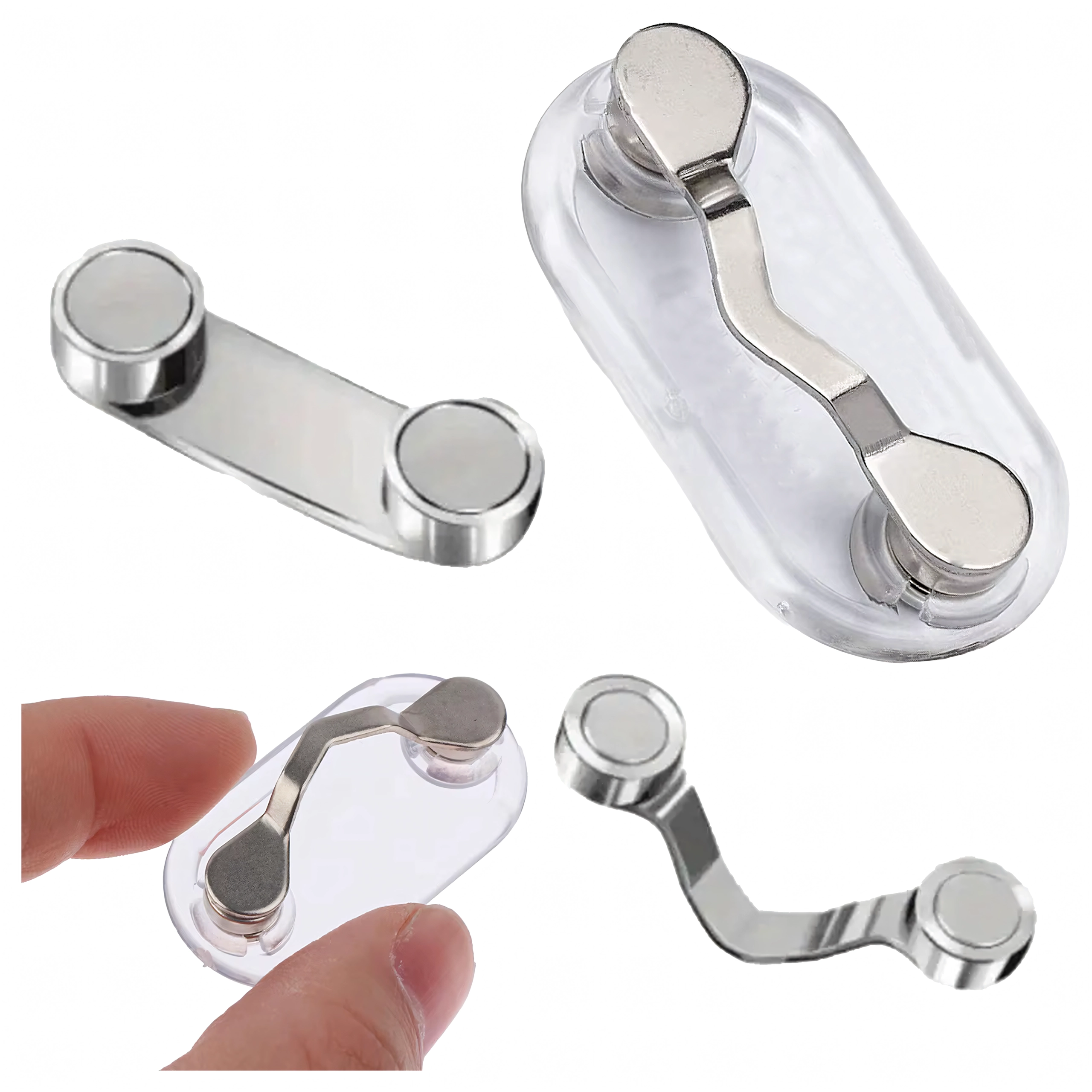 De praktische magnetische houder is een elegante manier om je bril, oortjes of ID altijd bij de hand te hebben. Twee sterke magneten klikken door de stof en creëren een stabiele bevestiging zonder je kleding te beschadigen. De metalen uitvoering met transparante onderlaag oogt subtiel en past in kantoor, op reis en bij sport.