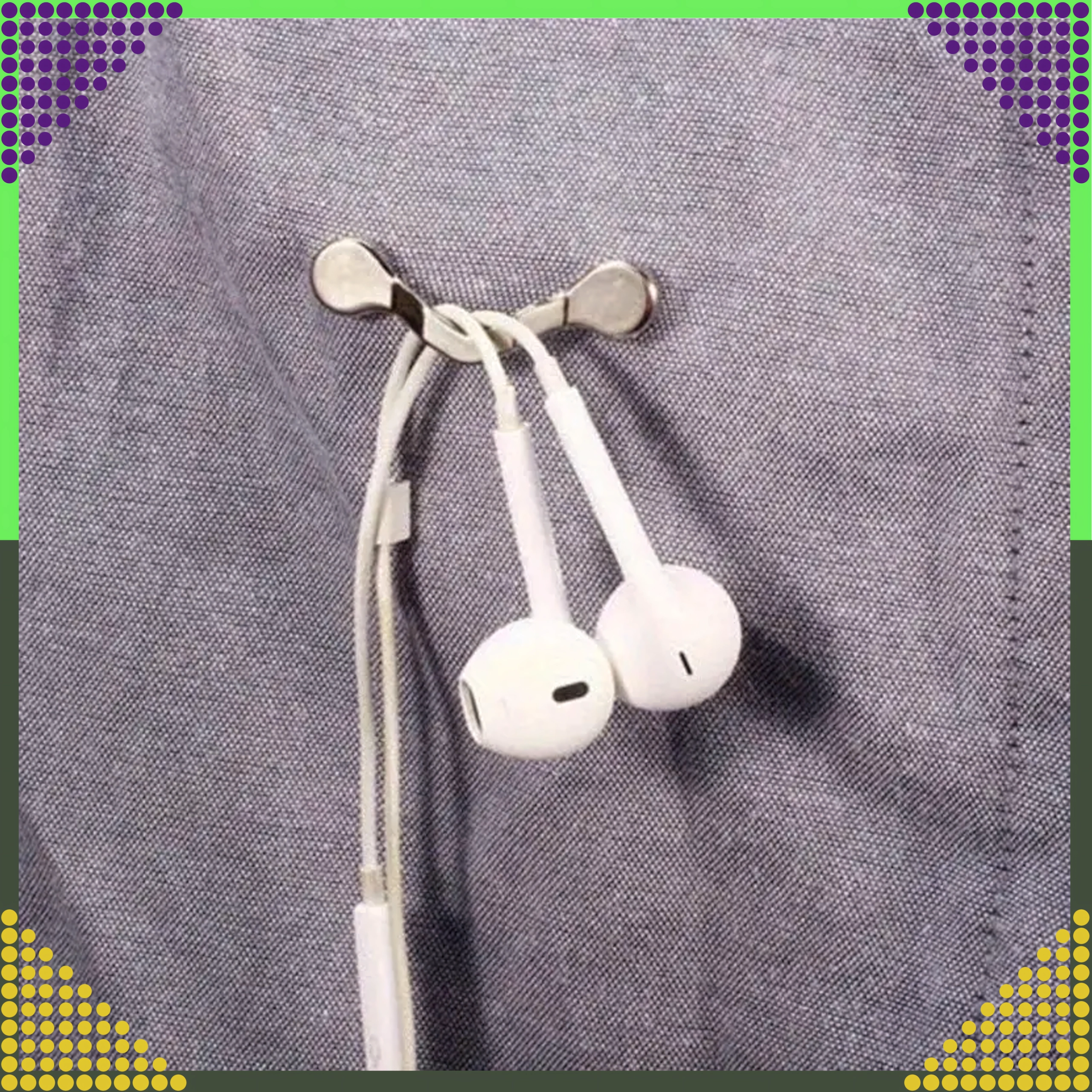 De slimme metalen brug klikt stabiel om een brilpootje of de kabel van oortjes, zodat ze niet in de knoop raken en altijd binnen handbereik zijn.