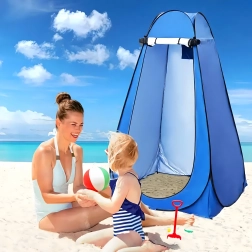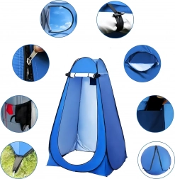 Deze pop-up tent biedt betrouwbare privacy bij omkleden, douchen of gebruik van een draagbaar toilet. De stabiele constructie met verankeringsogen en scheerlijnen zorgt voor veilig staan, ook bij wind, terwijl het ventilatieraam en de waterafstotende stof het gebruikscomfort verhogen.