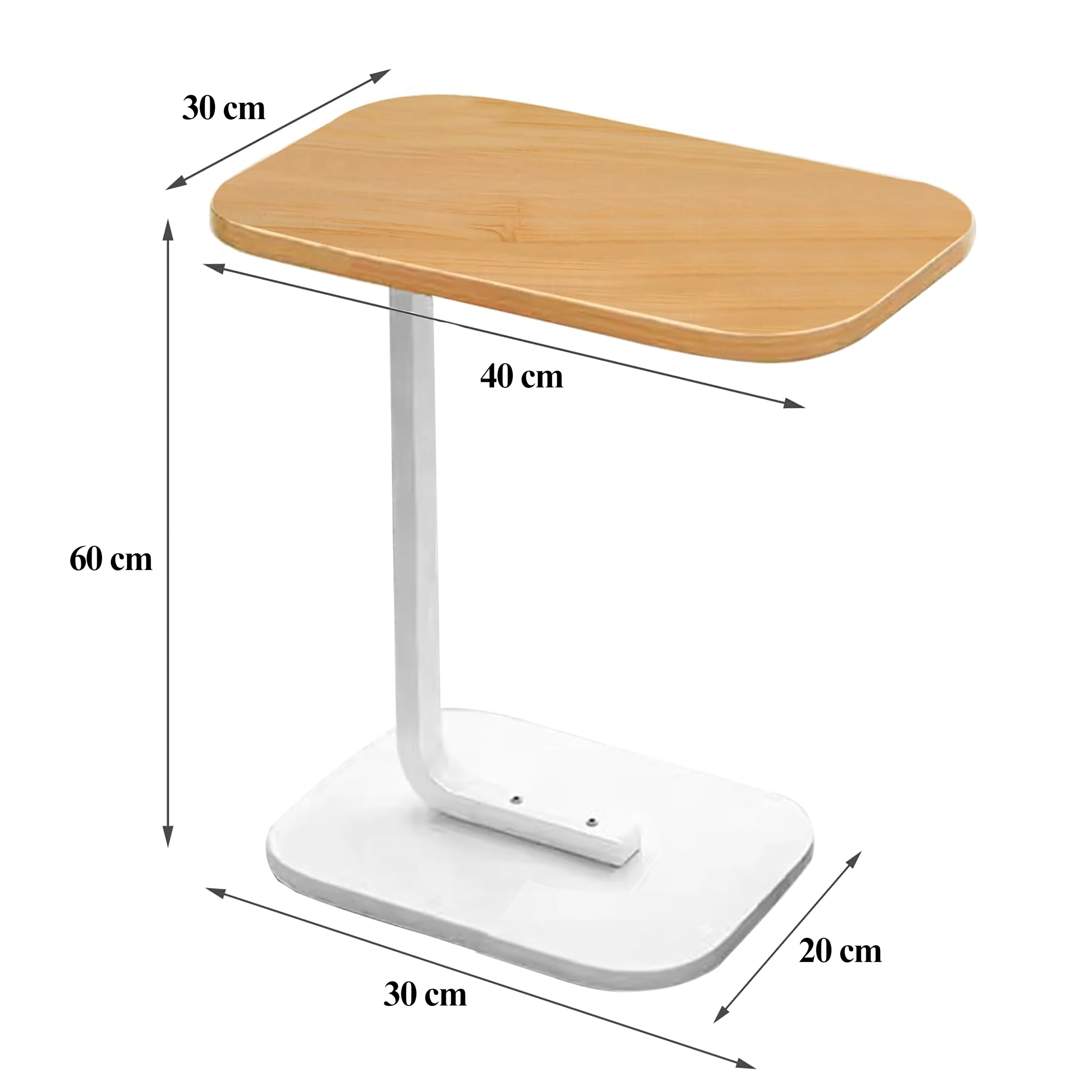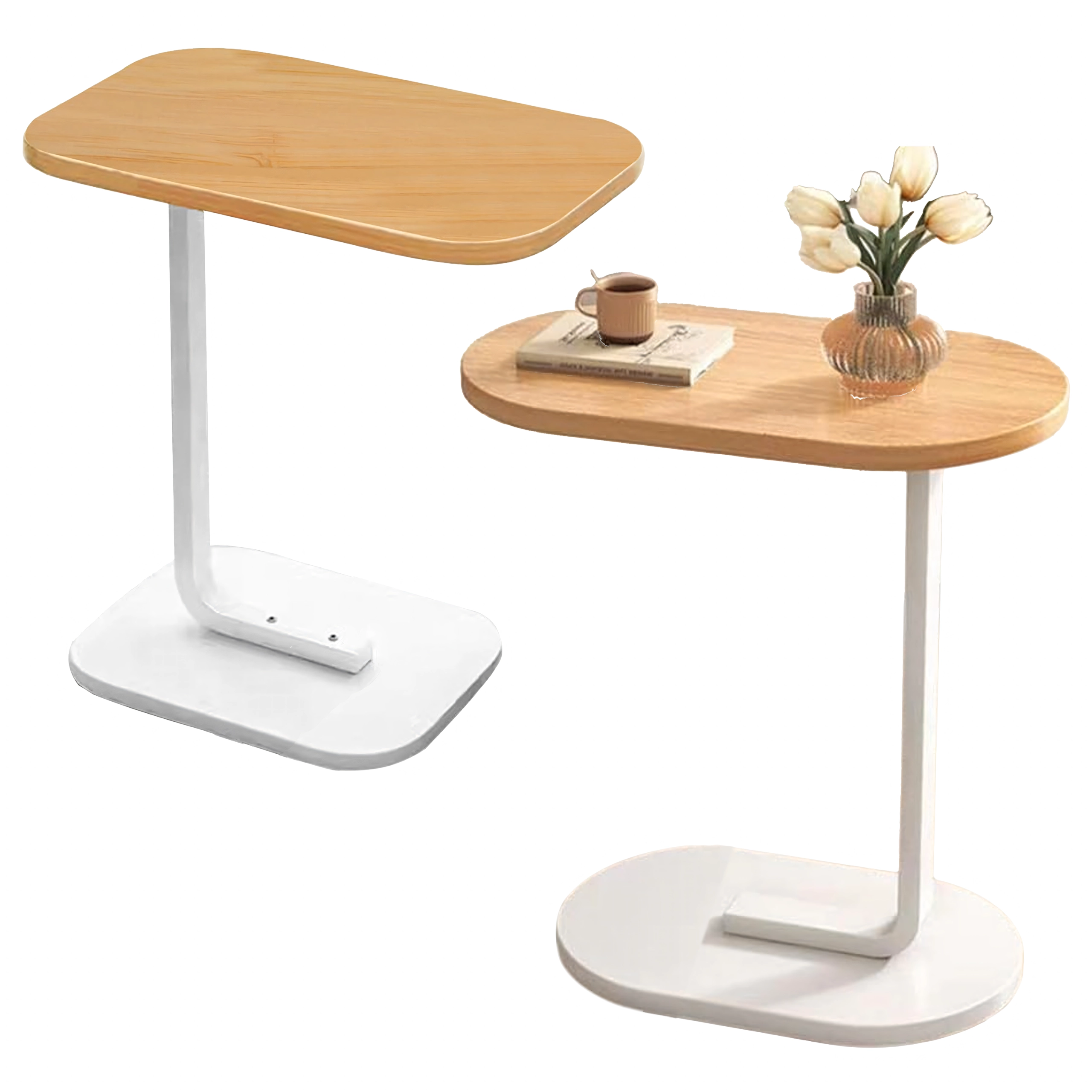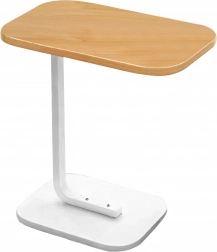 De elegante C-tafel met compacte afmetingen biedt een praktische oplossing voor zowel kleine als grotere interieurs. De stabiele metalen basis en het blad in een licht houtdecor vormen een tijdloze combinatie die gemakkelijk te combineren is met verschillende inrichtingsstijlen.