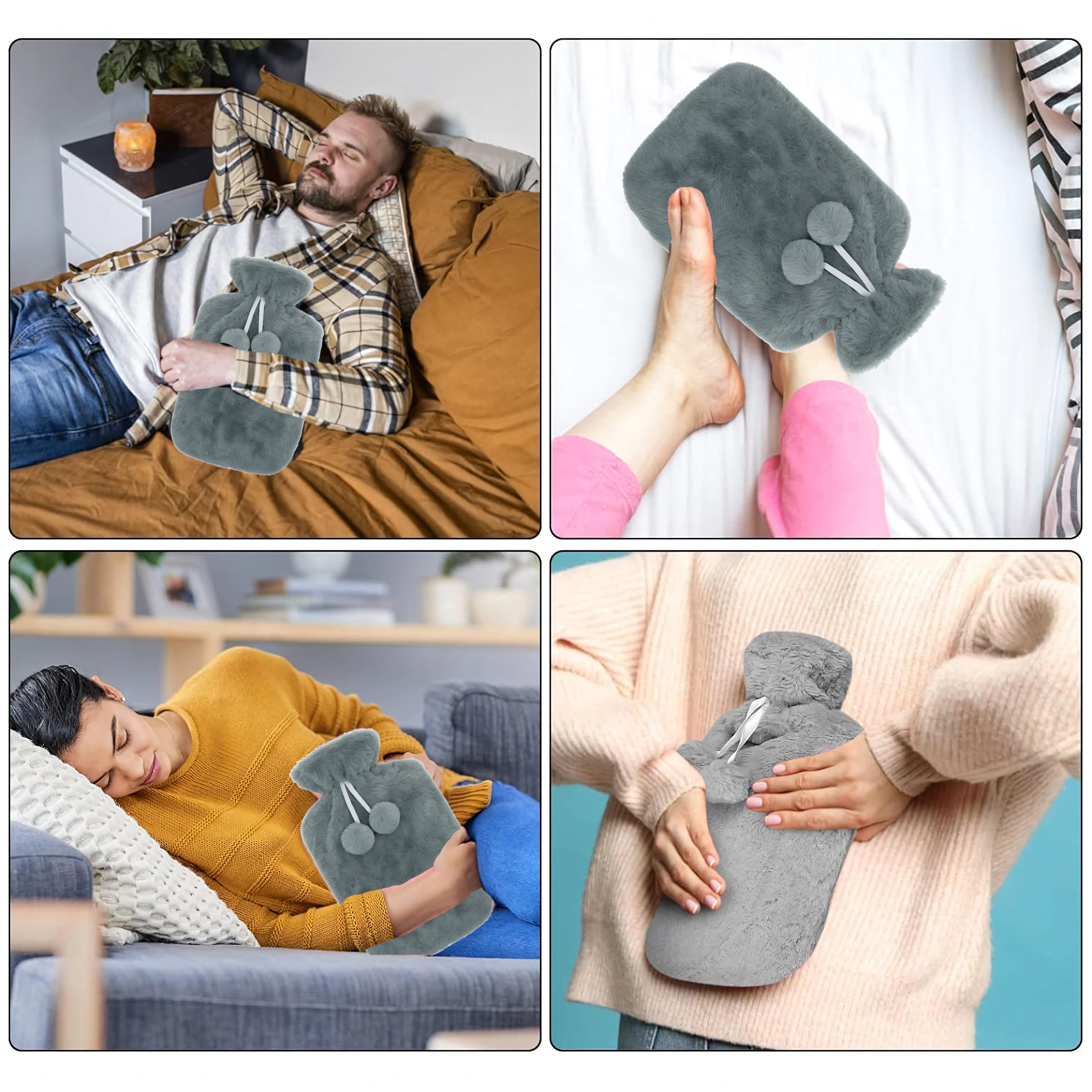 De praktische hoes met decoratieve pomponnetjes zorgt voor betere isolatie, hygiëne en comfort bij contact met het lichaam. De getextureerde rubberen kruik binnenin verdeelt de warmte gelijkmatig en vermindert het risico op plaatselijke oververhitting. De kruik is perfect voor thuis ontspannen, bij menstruatiepijn, spierspanning en om op te warmen bij koud weer.