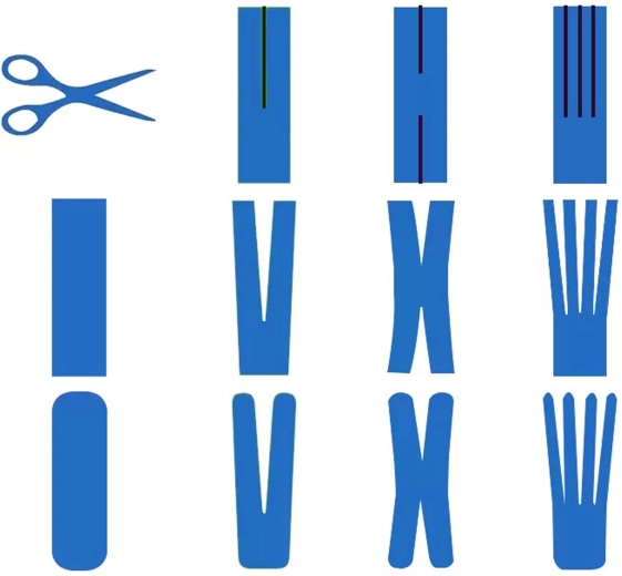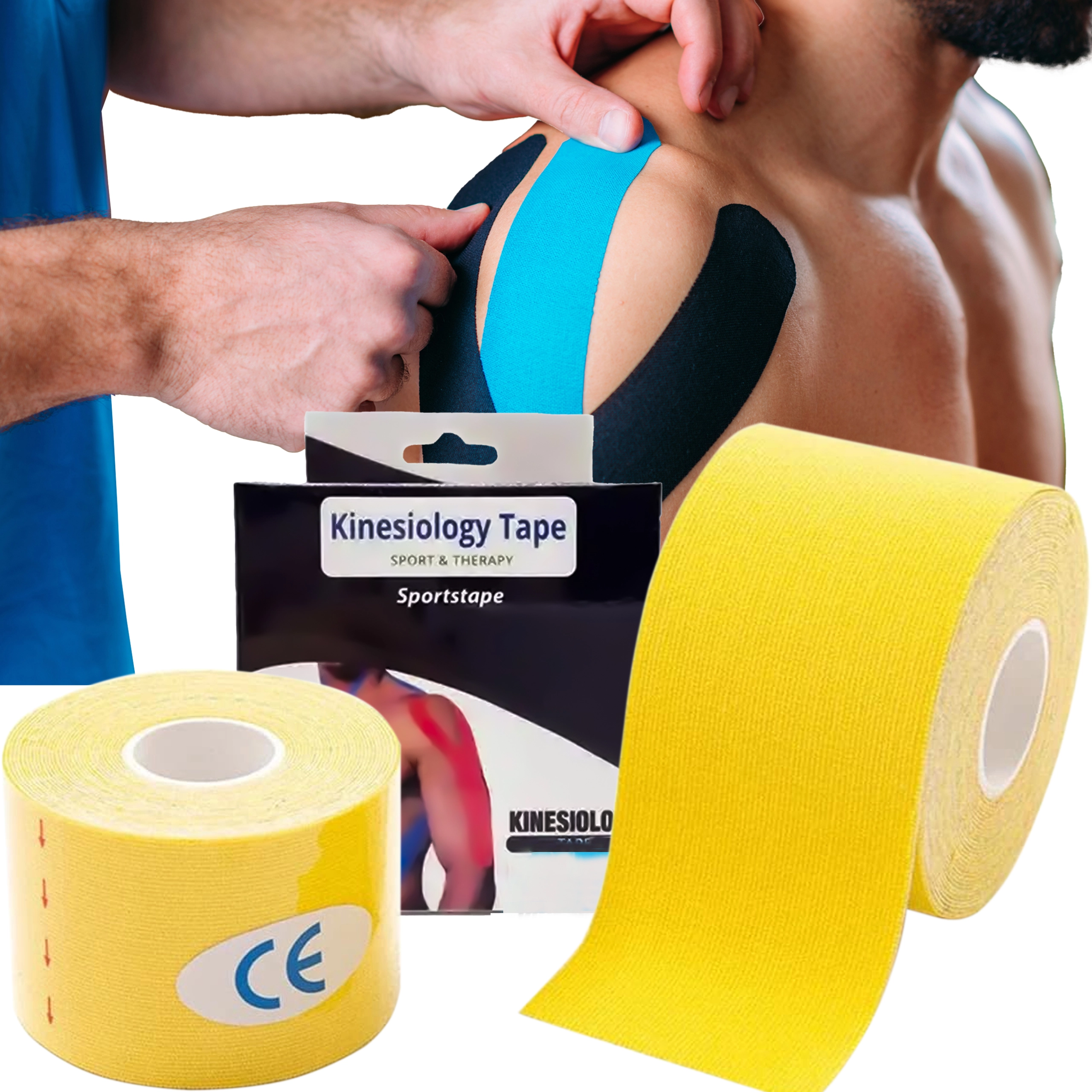 Eén rol van 5 m × 5 cm voor schouders, knieën, kuiten, rug en polsen. Eenvoudig in stroken en gewenste vormen te knippen.