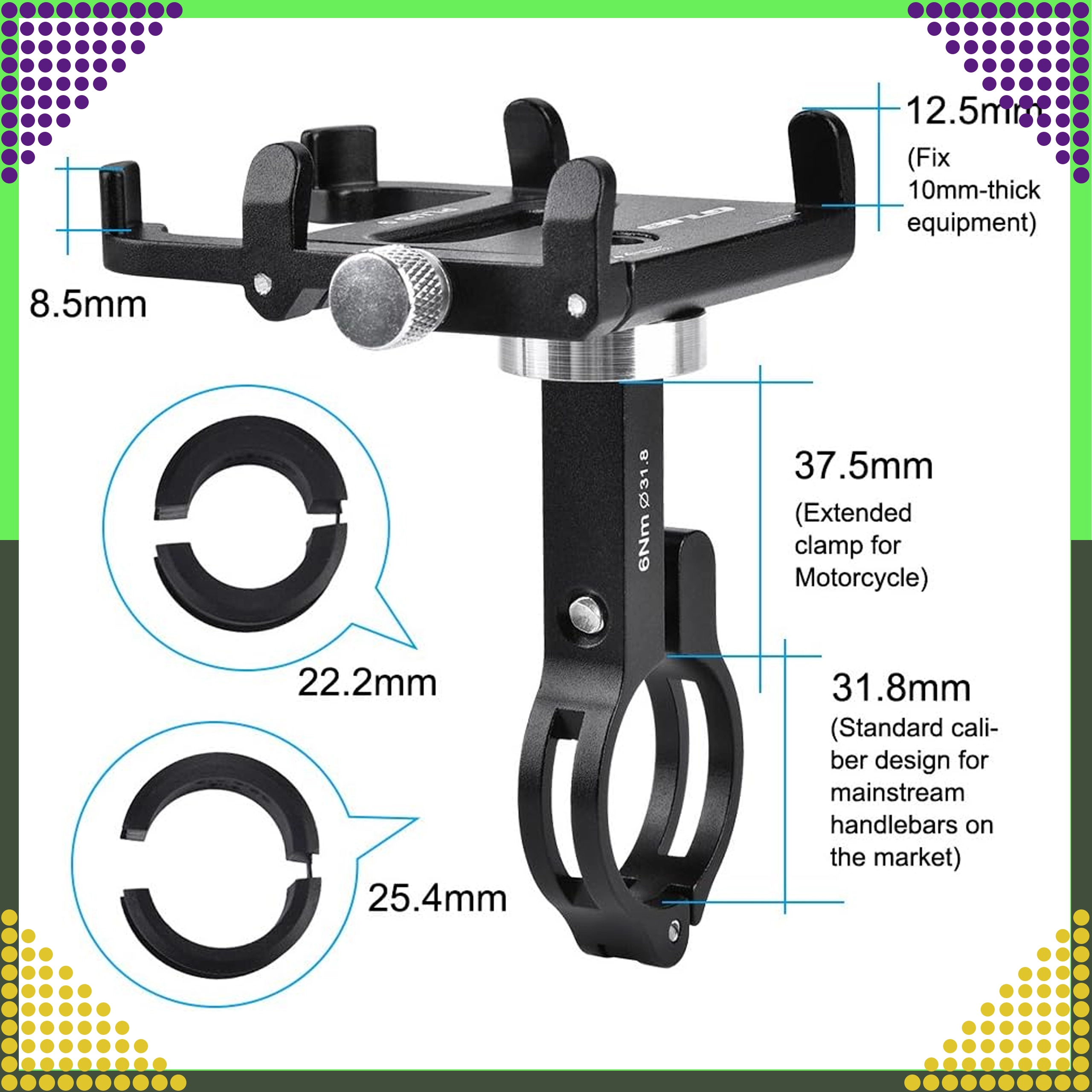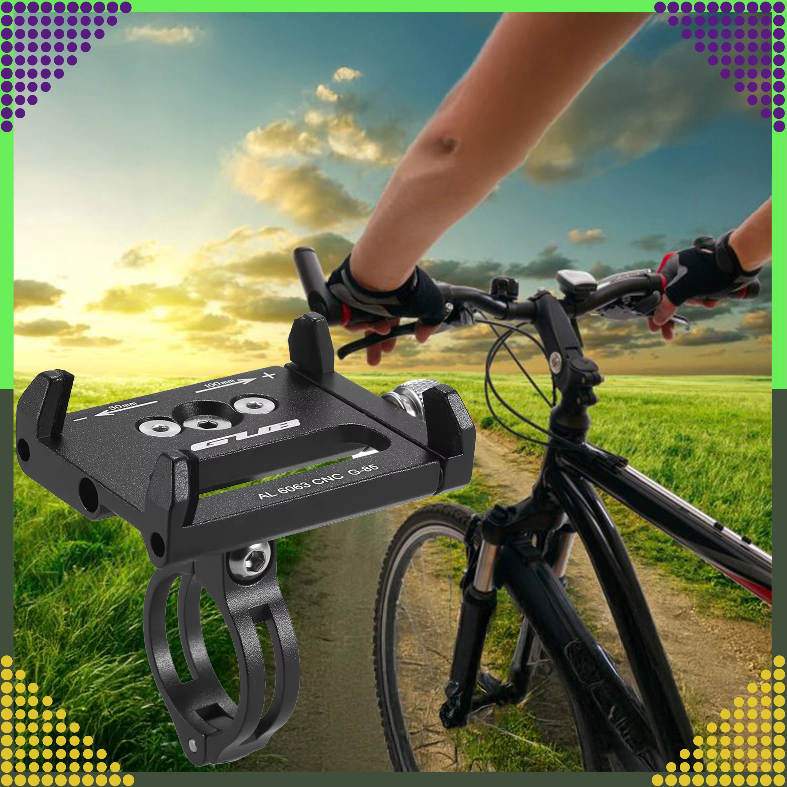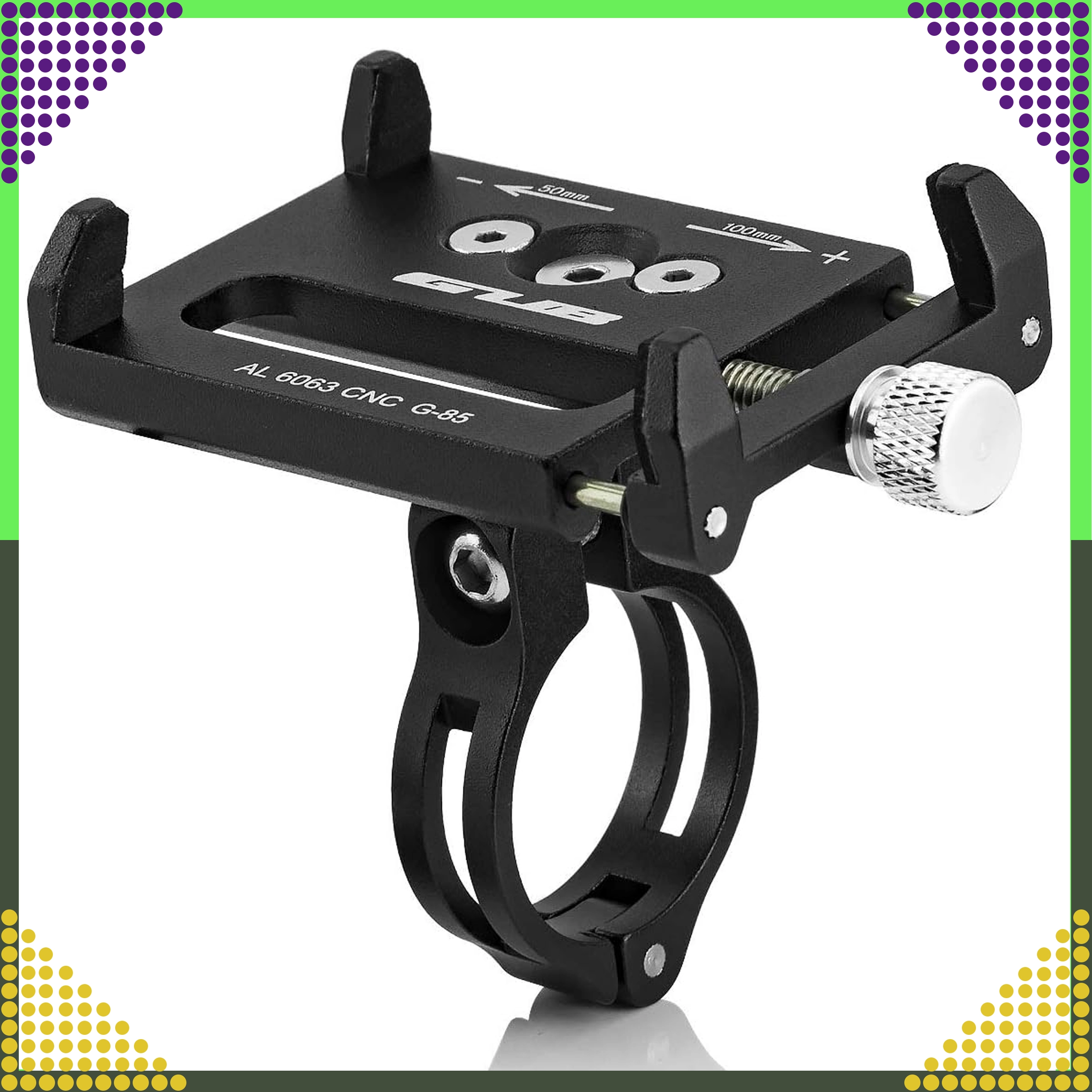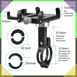 De universele GUB-telefoonhouder van duurzame aluminiumlegering zorgt voor een stevige en veilige bevestiging van je smartphone tijdens het fietsen of motorrijden. Dankzij de verstelbare kaken van 50–100 mm is hij compatibel met telefoons van 3,5–6,2" en eenvoudig te monteren op sturen met een diameter van 25,4–31,8 mm. De robuuste CNC-constructie biedt stabiliteit, zelfs op oneffen terrein.