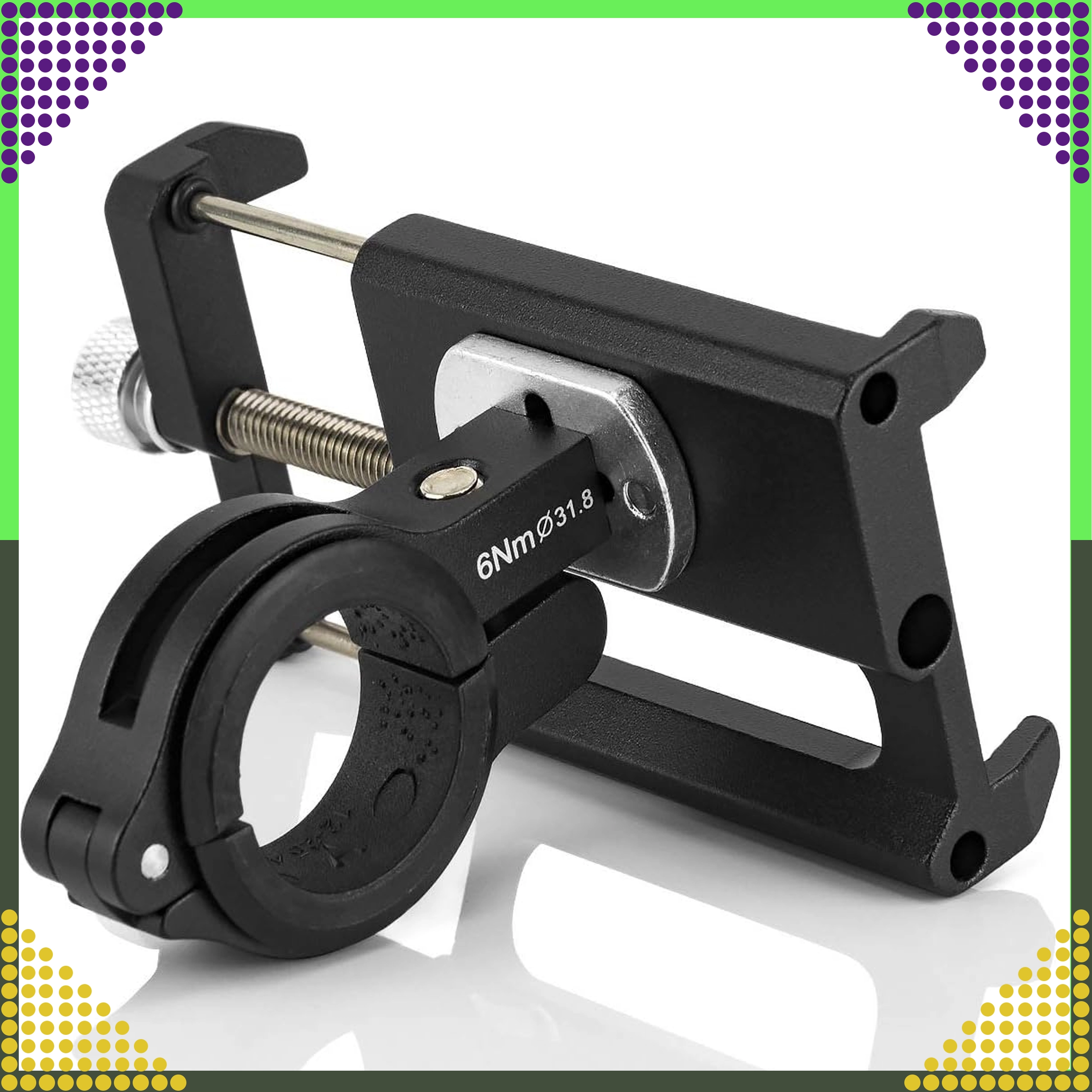 De geribbelde stelschroef zorgt voor soepel en veilig vastdraaien voor telefoons van 3,5–6,2" zonder speling of gekraak.