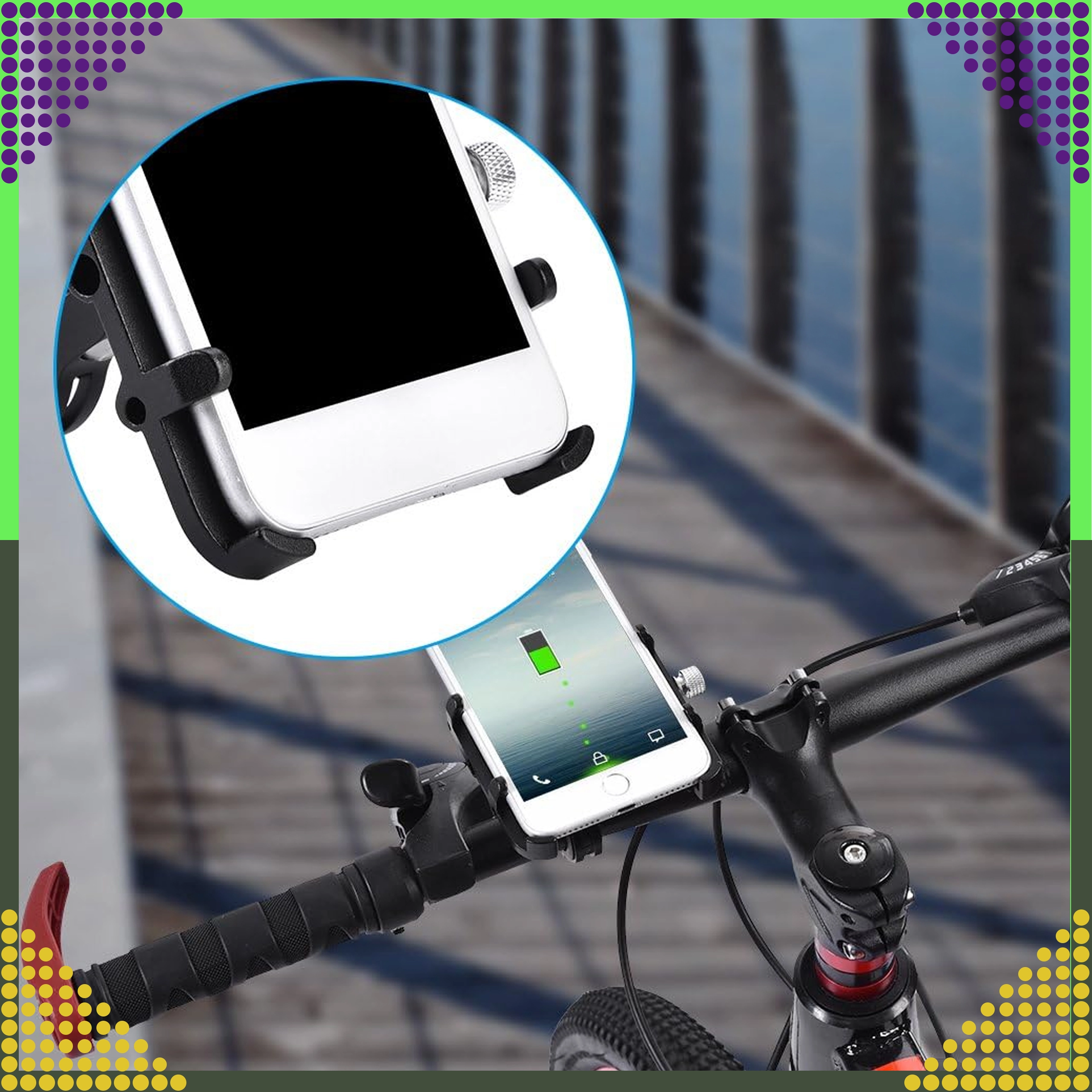 De montage is snel en zeker dankzij de robuuste stuurklem. De houder is geschikt voor stadsfietsen, MTB en racefietsen, evenals voor motorfietsen. Tijdens navigatie blijft het scherm perfect leesbaar en is de telefoon veilig gefixeerd, zodat je je op de weg kunt concentreren.