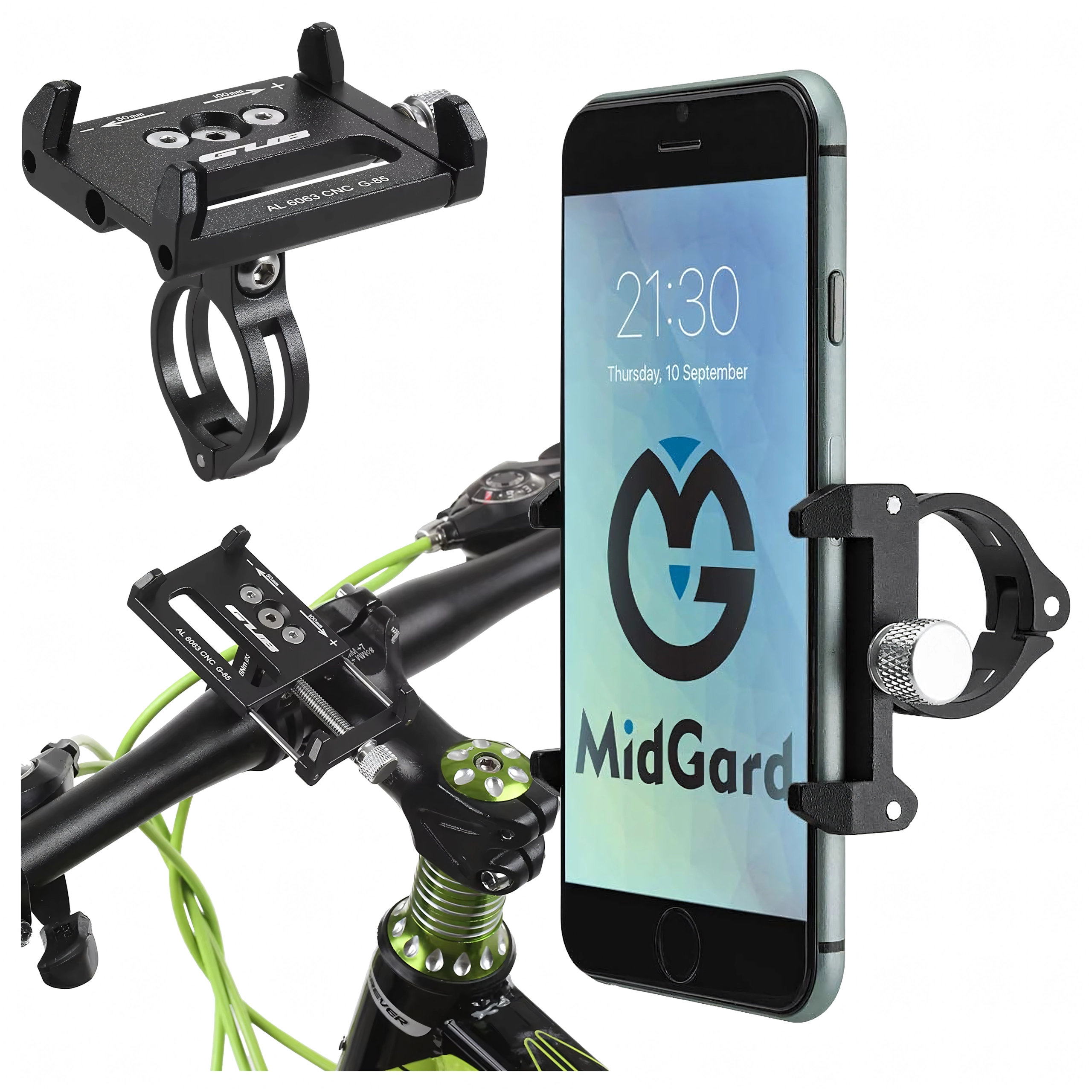 CNC-aluminium weerstaat schokken en trillingen en houdt de telefoon stevig vast, ook bij dynamisch rijden. Ideaal voor stad, weg en trail.