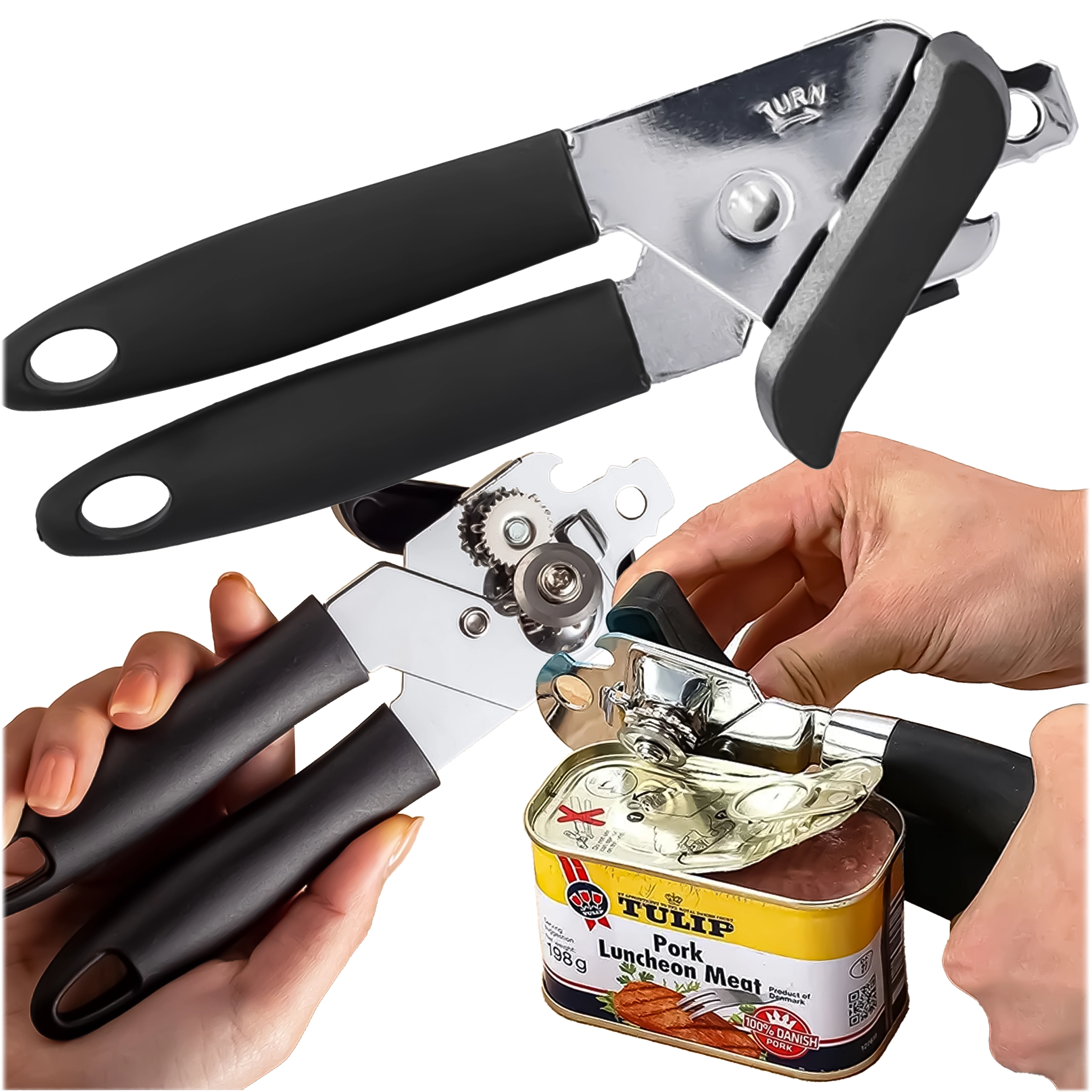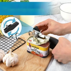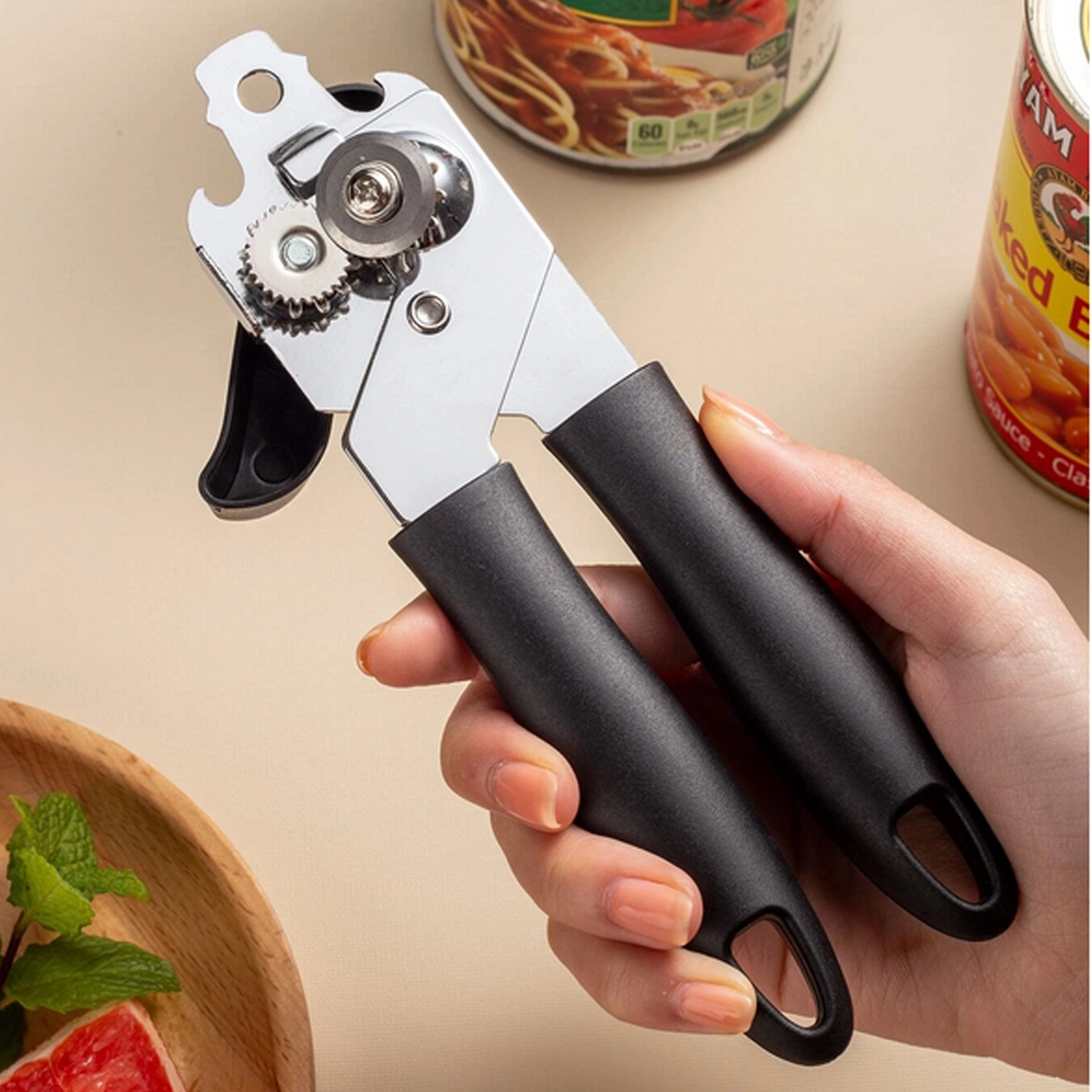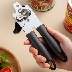 Maak koken gemakkelijker met een hoogwaardige handmatige blikopener van roestvrij staal. Dankzij het scherpe snijwieltje en de precieze vertanding opent hij het deksel soepel en zonder scheuren. Ergonomische, antisliphandgrepen bieden zekerheid en comfort, ook bij langdurig gebruik.