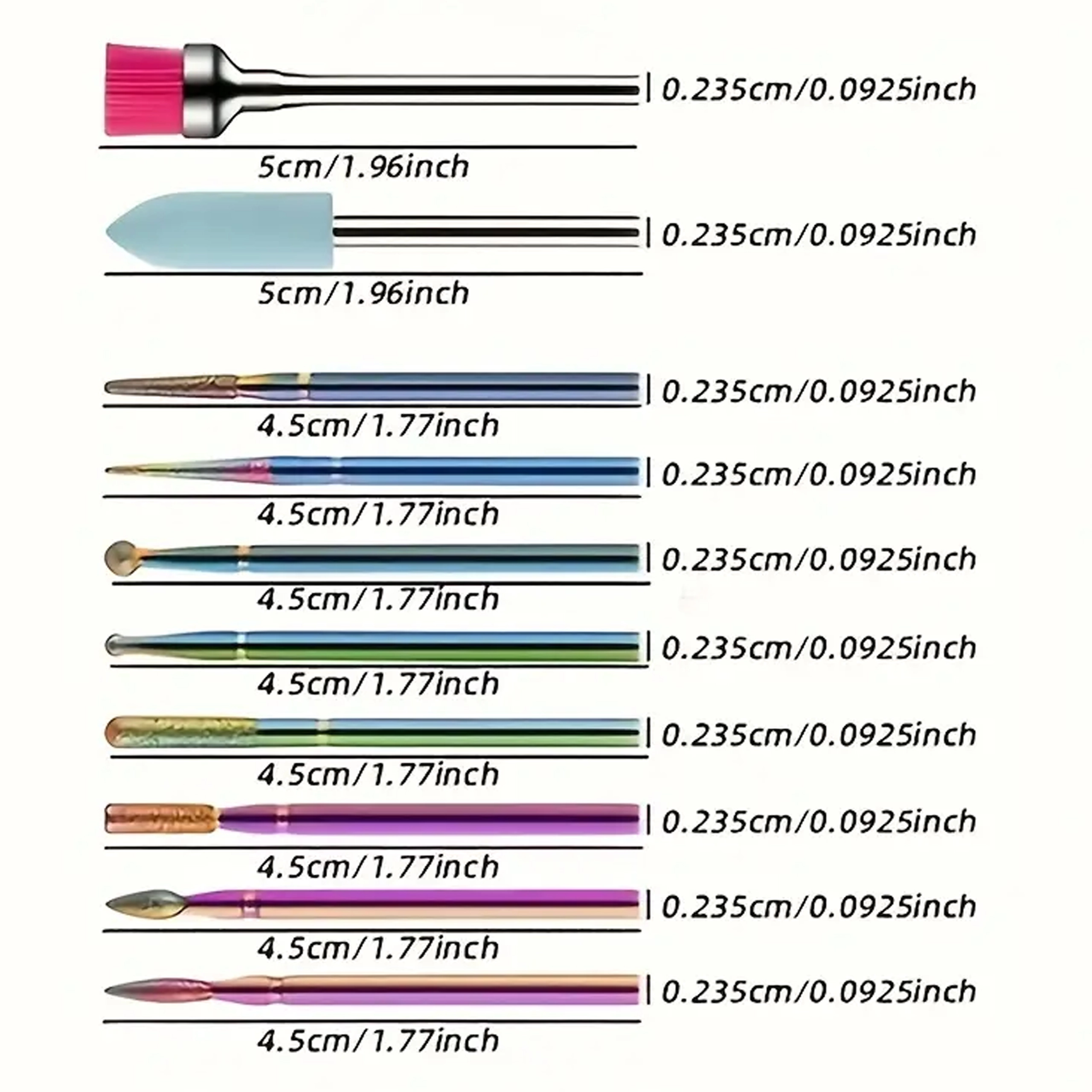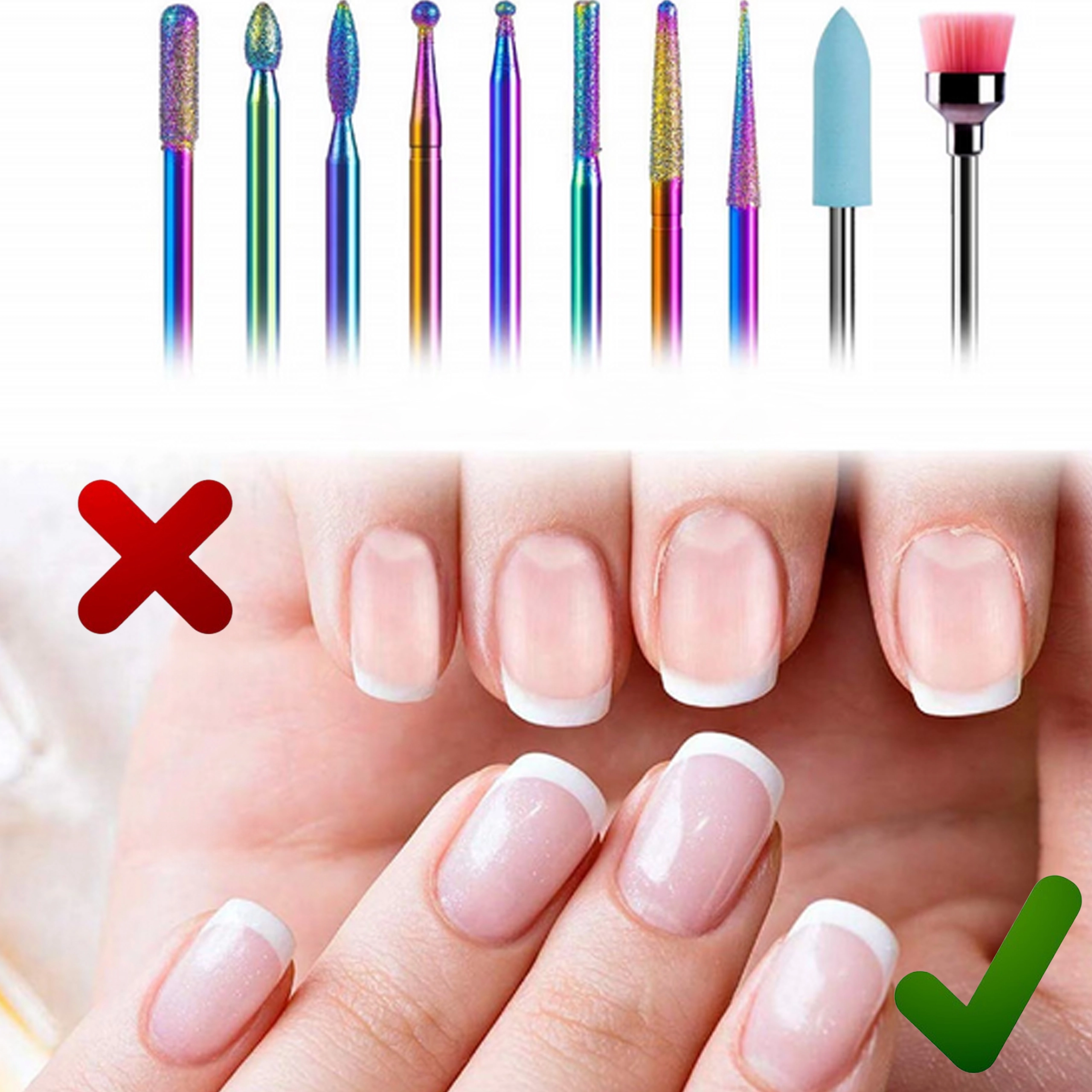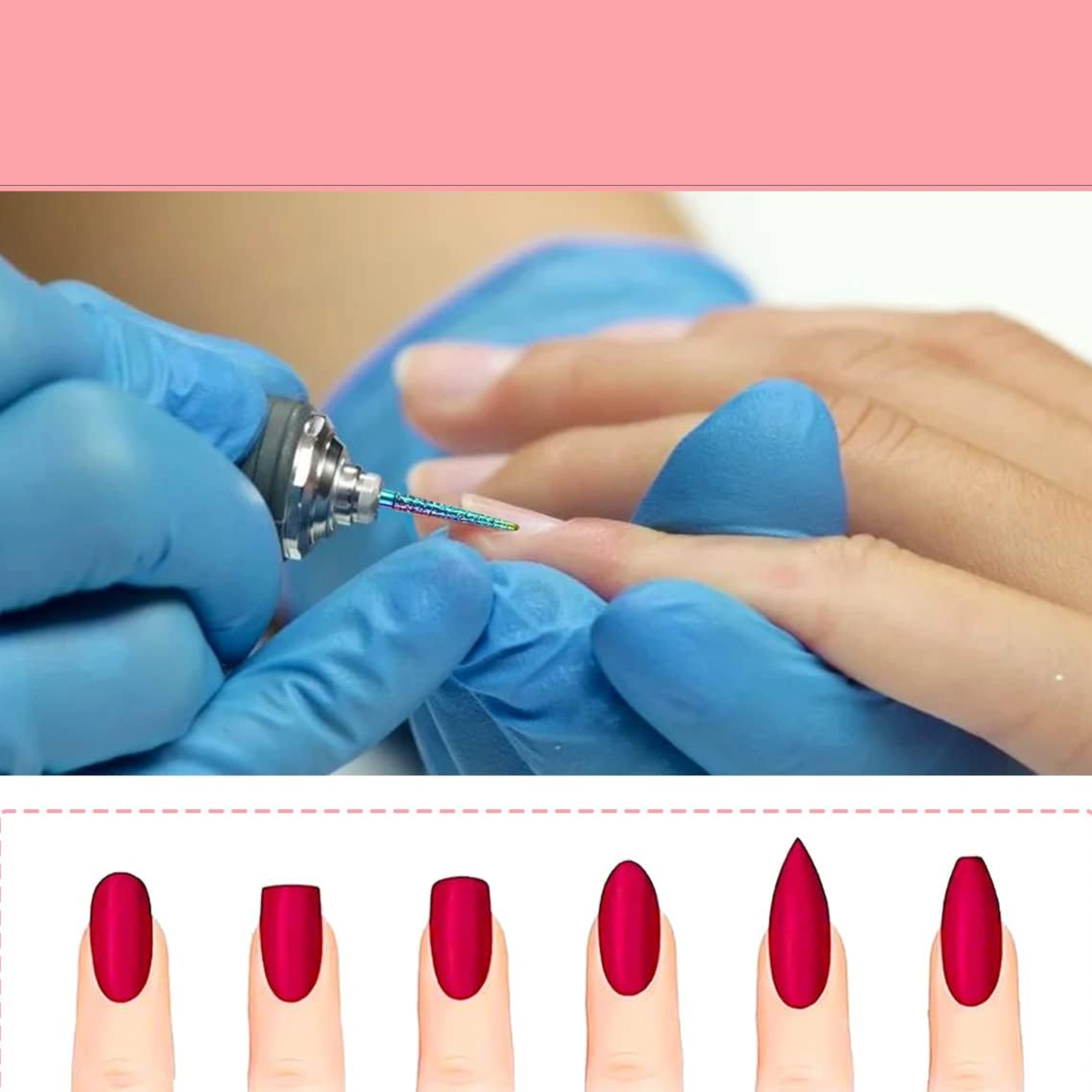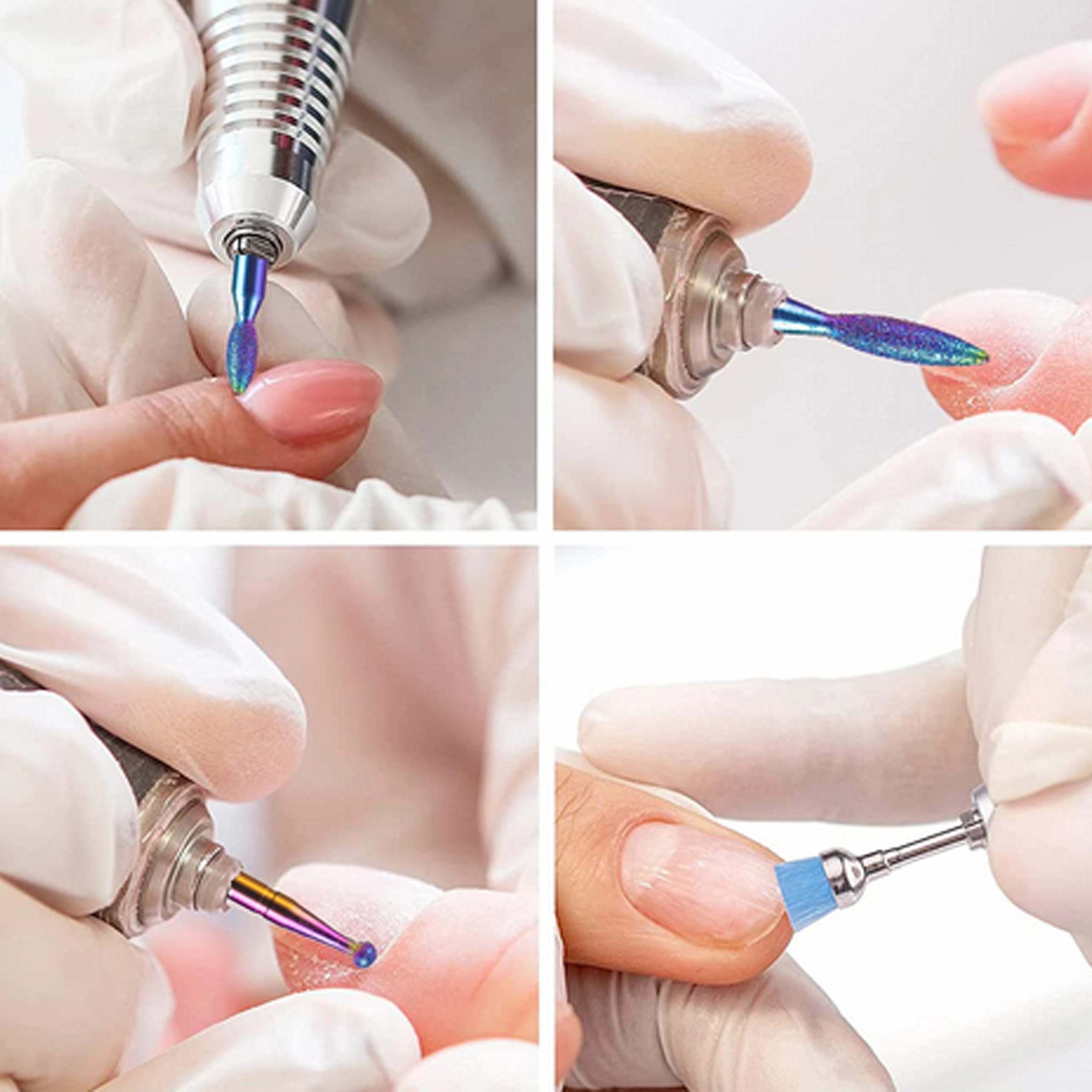 Kegel, cilinder, bol of naald – diverse profielen voor het reinigen van de nagelriem, het vormen van de nagel, het verwijderen van materiaal en voor gedetailleerde afwerking.