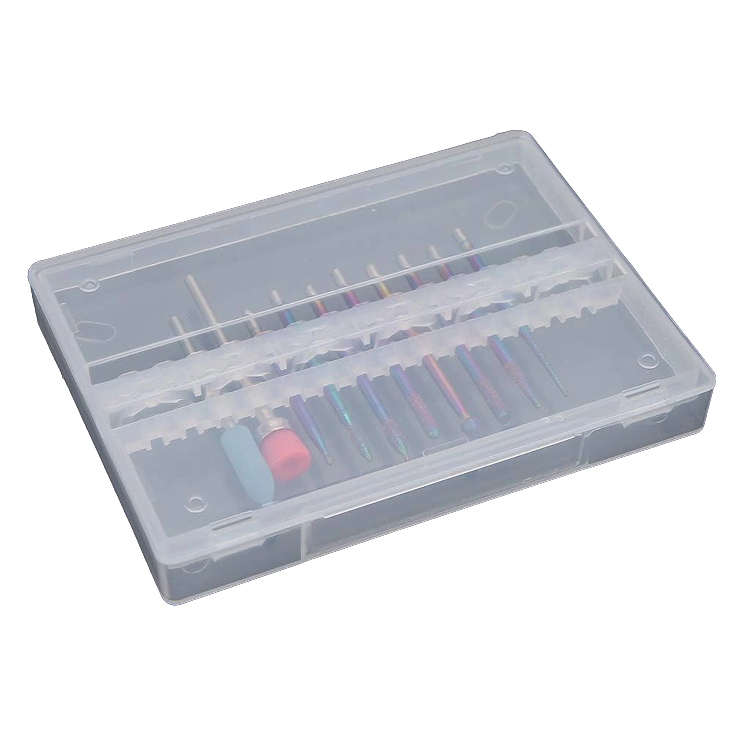 Het afsluitbare etui beschermt de opzetstukken, verlengt hun levensduur en houdt je werkplek overzichtelijk.