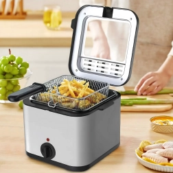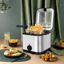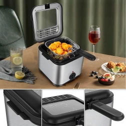 Deze traditionele oliefriteuse is een ideale keuze voor liefhebbers van thuis frituren. De inhoud van 2,5 l is perfect voor porties voor het gezin, terwijl de temperatuurregeling het mogelijk maakt het frituren aan te passen aan verschillende soorten voedsel – van friet en vis tot schnitzels of nuggets.