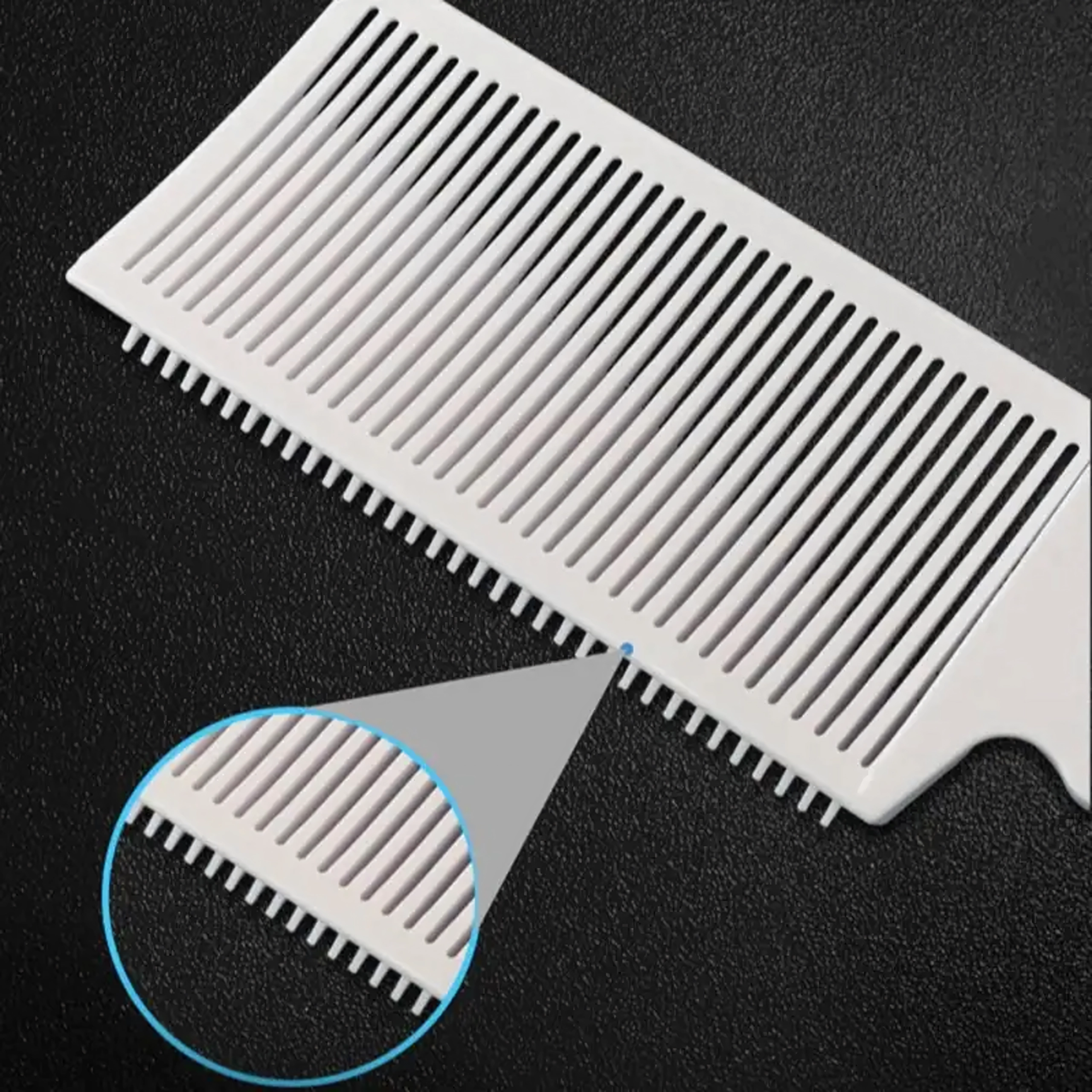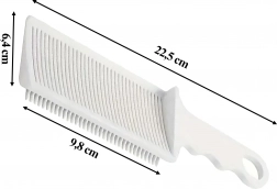 Zoek je een betrouwbare kam voor precieze knipsels en perfecte overgangen? Deze professionele witte kapperskam met ergonomisch handvat biedt uitstekende controle bij werken met zowel schaar als tondeuse. De fijne en medium tanden helpen het haar precies te sectioneren en te geleiden, zodat je strakke lijnen en soepele fades creëert.