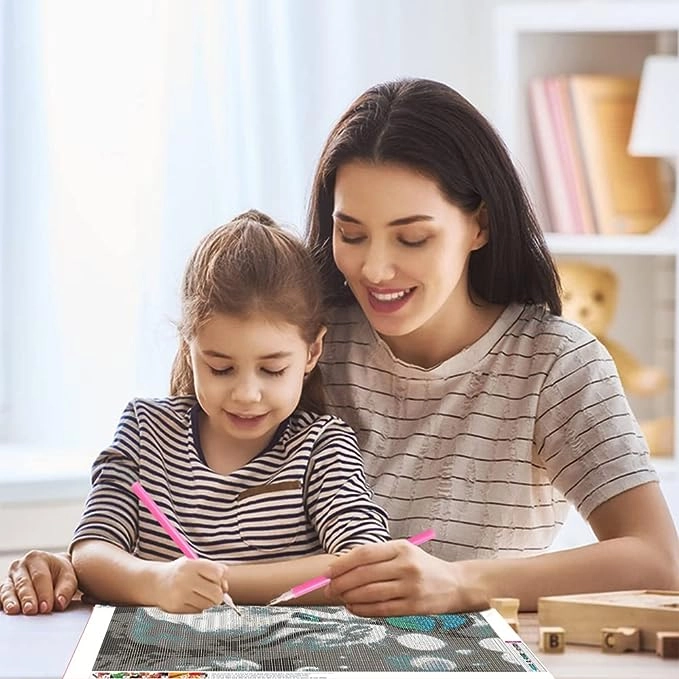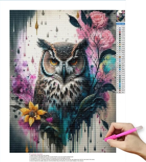 In de set zit alles wat je nodig hebt voor comfortabel creëren. Het geribbelde bakje lijnt de steentjes uit, de was in de applicator zorgt voor gemakkelijk oppakken en de kleurlegenda op het canvas begeleidt elke stap. Het voltooide werk is perfect als originele decoratie voor woonkamer, slaapkamer of kinderkamer – en ook als bijzonder cadeau.