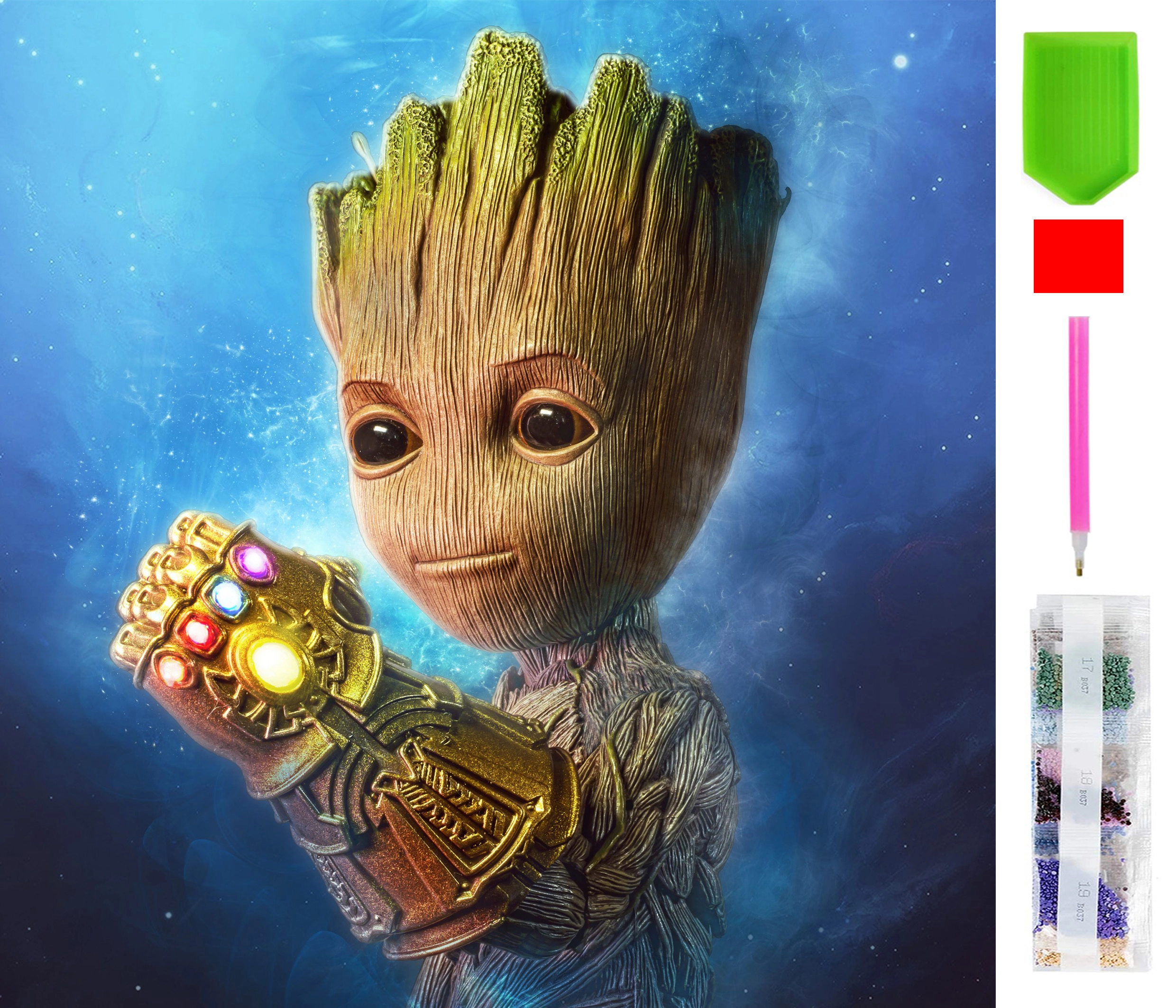 Met deze complete set voor diamantschilderen maak je een fonkelend mozaïekschilderij met het motief Groot. De werkwijze is eenvoudig: je plaatst de gekleurde steentjes (drills) volgens de symbolen op het zelfklevende canvas en ziet hoe er voor je ogen een stralend 3D-mozaïek ontstaat. Creatief bezig zijn dat stress vermindert, geduld en precisie ontwikkelt en een werkelijk indrukwekkend resultaat oplevert.