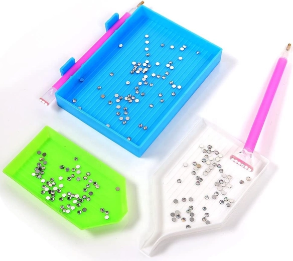 Maak sprankelende kunstwerken met de complete gereedschapsset voor diamond painting. Dankzij de precieze roller bereik je een gelijkmatige hechting en een glad oppervlak zonder uitstekende steentjes. Bakjes met ribbels en applicators met meerdere punten versnellen je werk en verbeteren de nauwkeurigheid van plaatsing.
