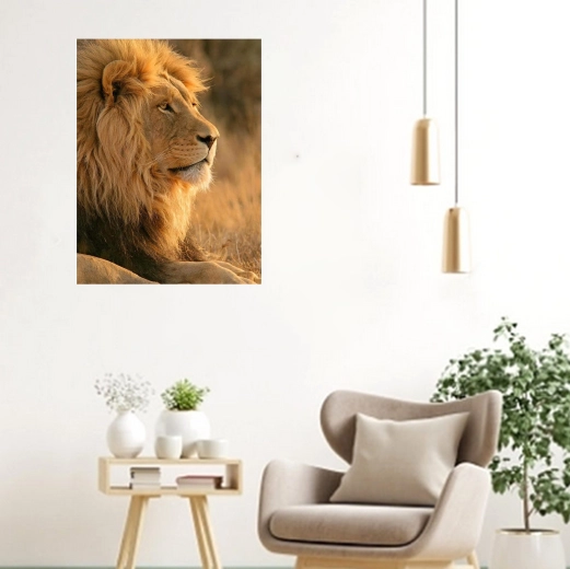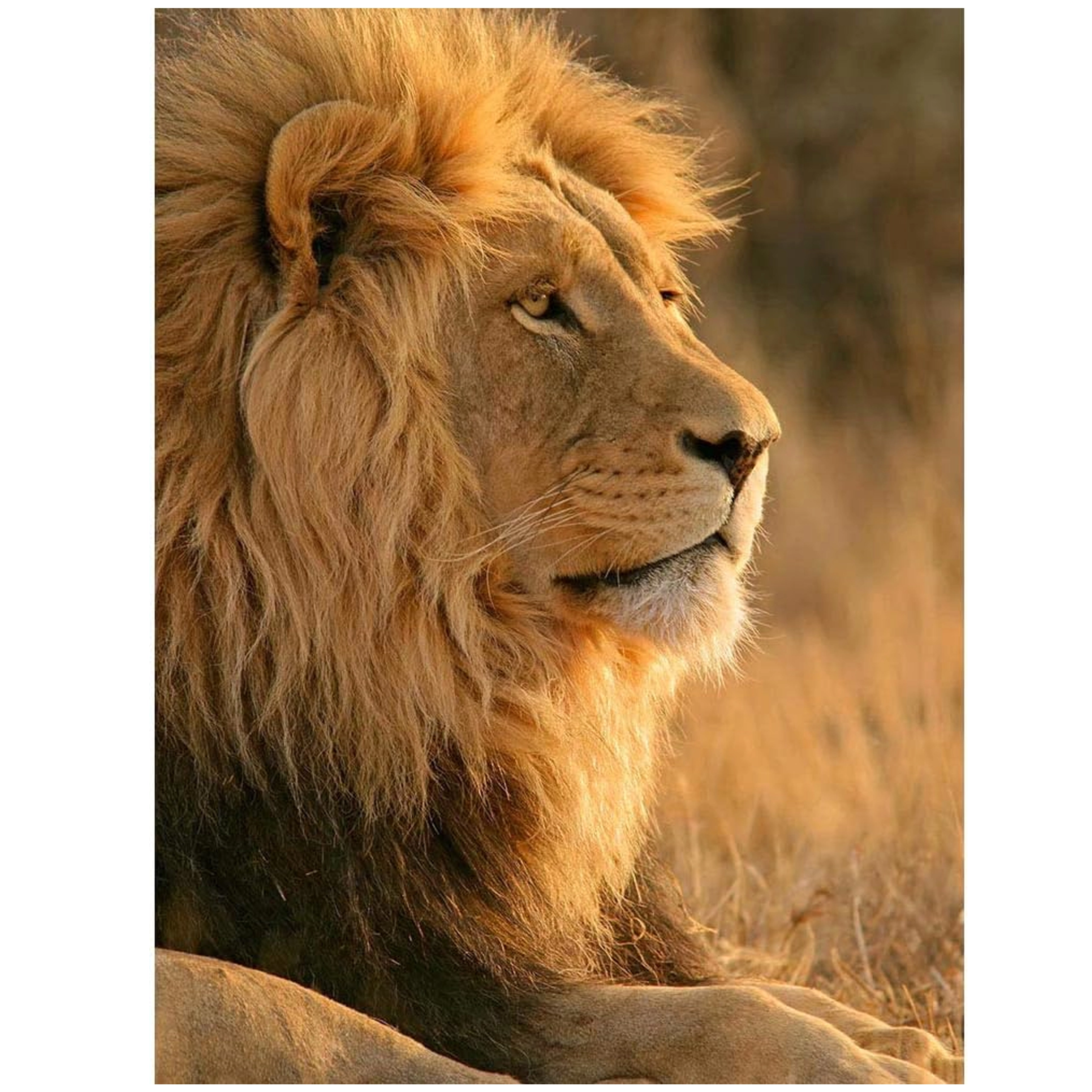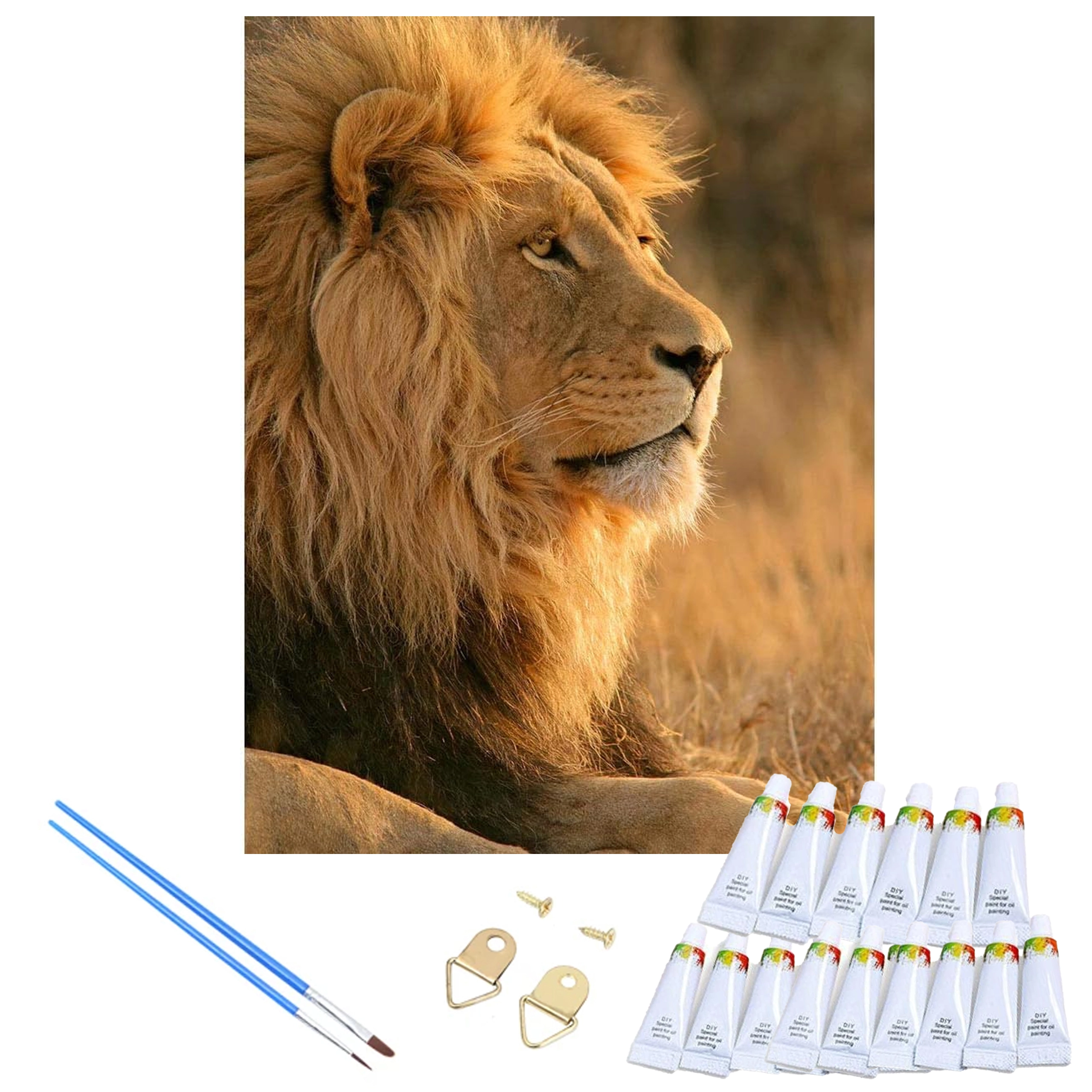 Het elegante leeuwenmotief op een canvas van 40 × 50 cm is gespannen op een houten frame, zodat je het voltooide werk eenvoudig kunt ophangen.