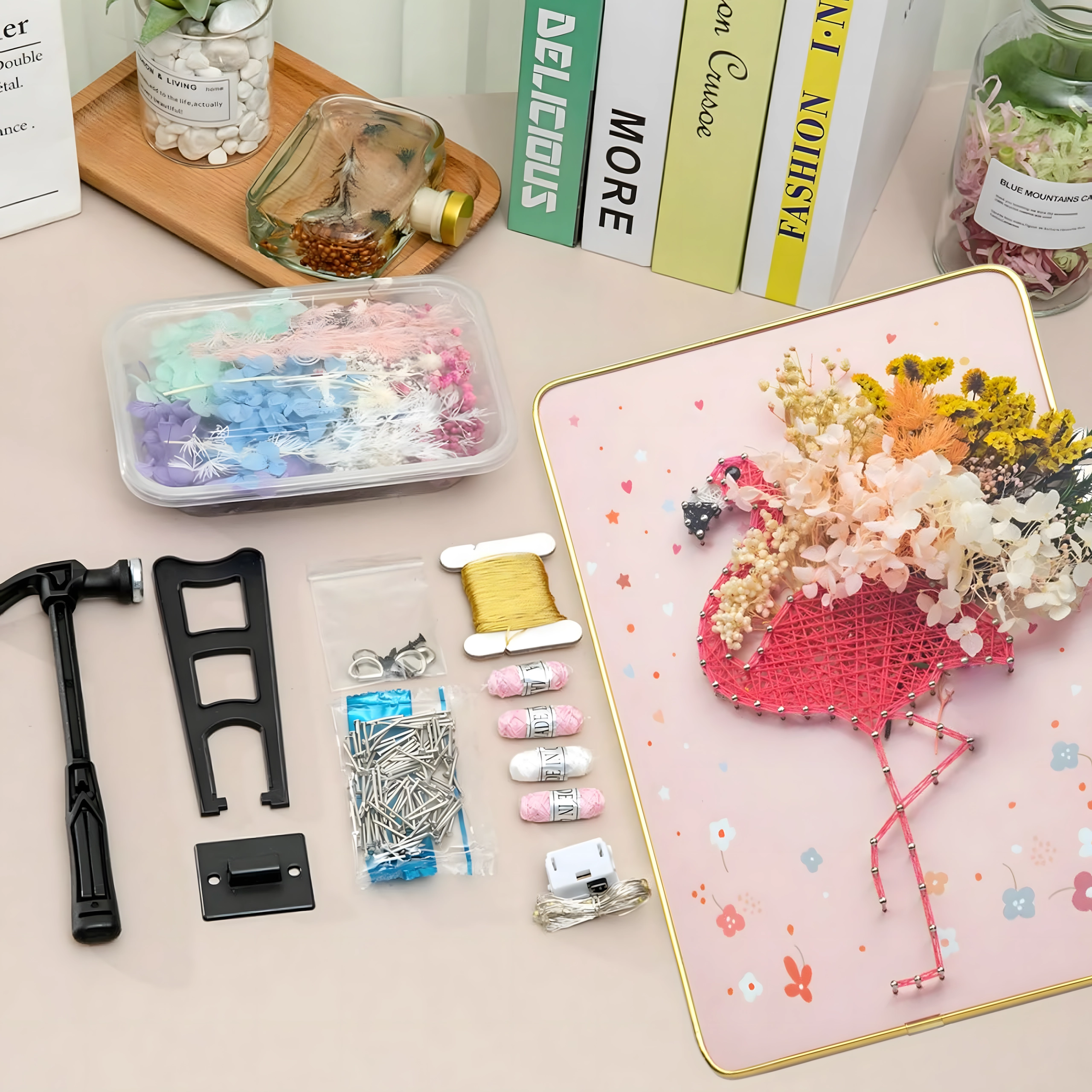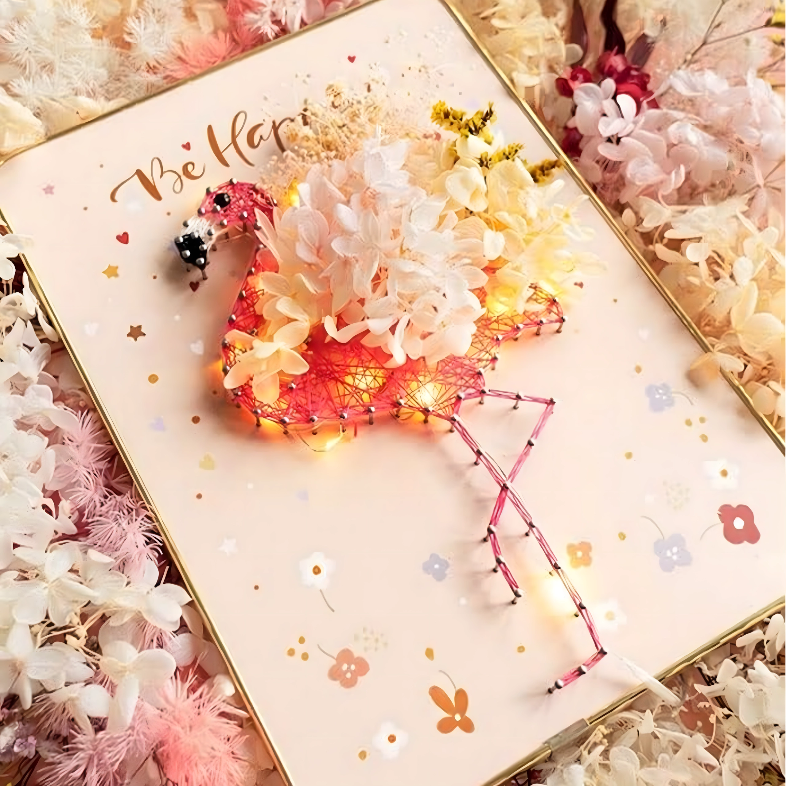 De ingebouwde LED-lichtjes geven het voltooide string-artkunstwerk een magische uitstraling en creëren een gezellige sfeer in ieder interieur.
