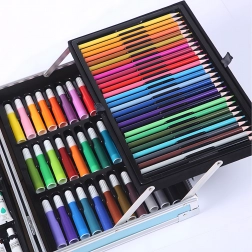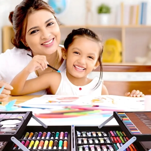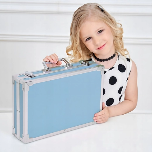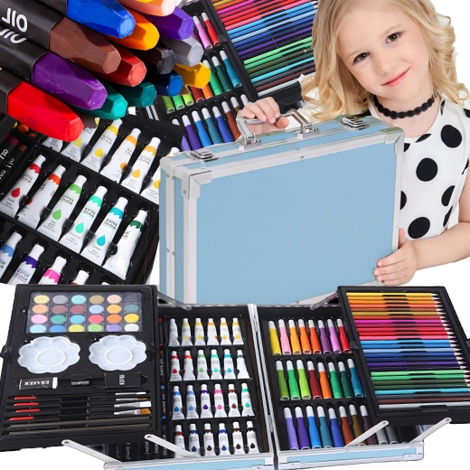 Van de eerste krabbels tot complete tekeningen – de set is perfect voor thuis knutselen, schoolprojecten en als cadeau. Het stevige koffertje met metalen handgreep en sluitingen zorgt voor veilige opslag en gemakkelijk transport. De rijke uitrusting stimuleert de fijne motoriek, concentratie en creativiteit van kinderen.