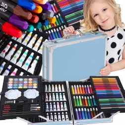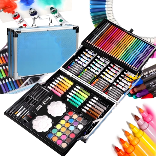 Deze complete knutselset in een stevig, draagbaar koffertje biedt alles wat kinderen en beginnende kunstenaars nodig hebben om hun fantasie te ontwikkelen. Je vindt er kleurpotloden, stiften, waskrijtjes, oliepastels, aquareltabletten en -verftubes, penselen, paletten en andere onmisbare hulpmiddelen. Dankzij de doordachte indeling heeft elk onderdeel zijn plek en is creatief werken overzichtelijk en comfortabel.