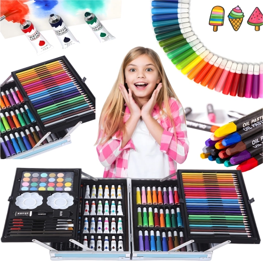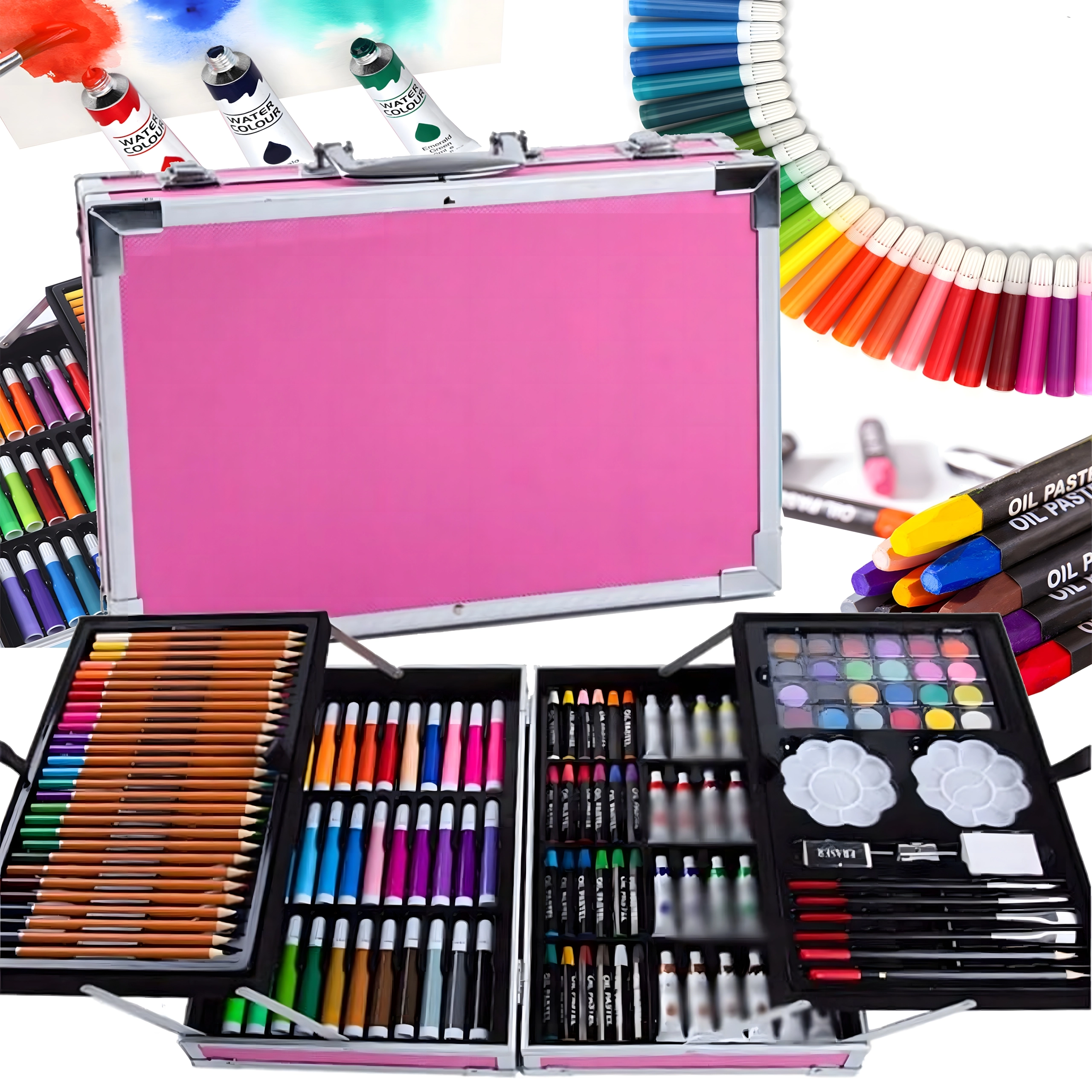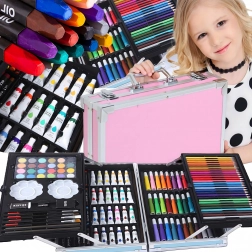Deze uitgebreide kunstset in een duurzame aluminium koffer stimuleert de fantasie van kinderen en ontwikkelt de fijne motoriek. Dankzij de overzichtelijke organisatie heb je alle kunstbenodigdheden altijd bij de hand – van schetsen en inkleuren tot aquarelleren.