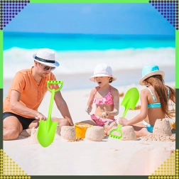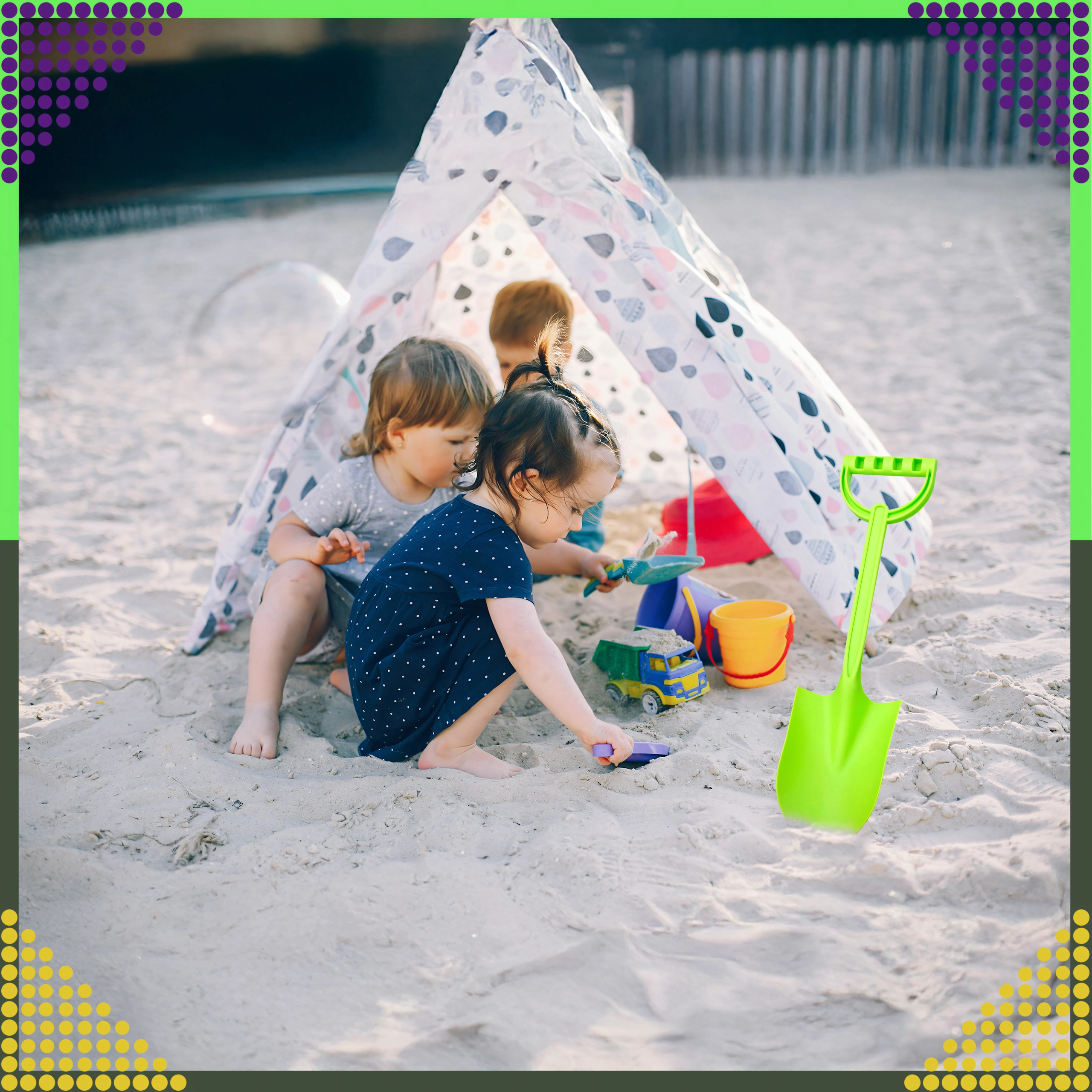 Hoogwaardige, niet-giftige kunststof die weerbestendig is, kan strand, zandbak en tuin aan en is bestand tegen dagelijks kinderspel.
