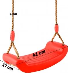 Deze tuinschommel combineert een stevig kunststof zitje met duurzame gevlochten touwen en metalen karabiners voor eenvoudige en veilige installatie. Het gevormde en geribbelde zitoppervlak verhoogt comfort en grip, ideaal voor dagelijks buitengebruik.