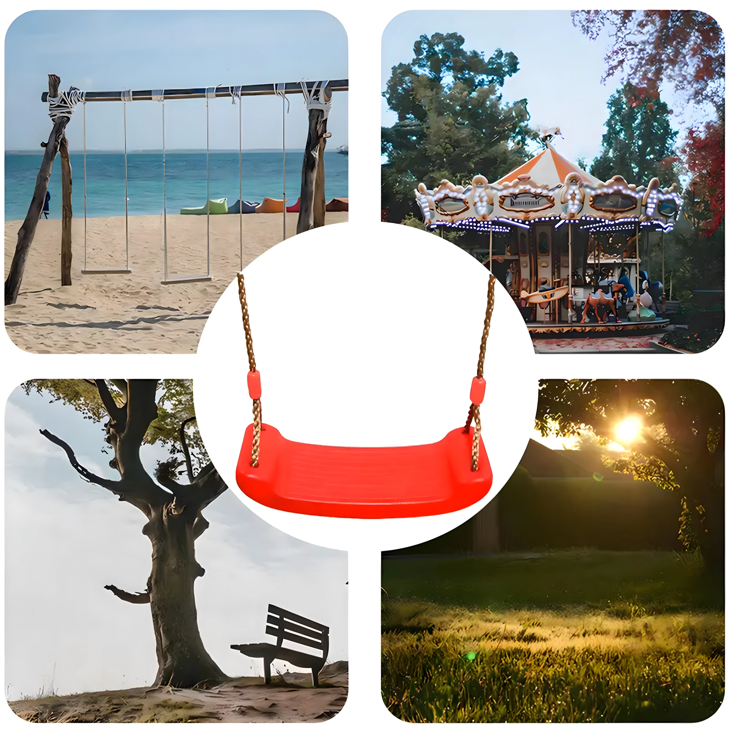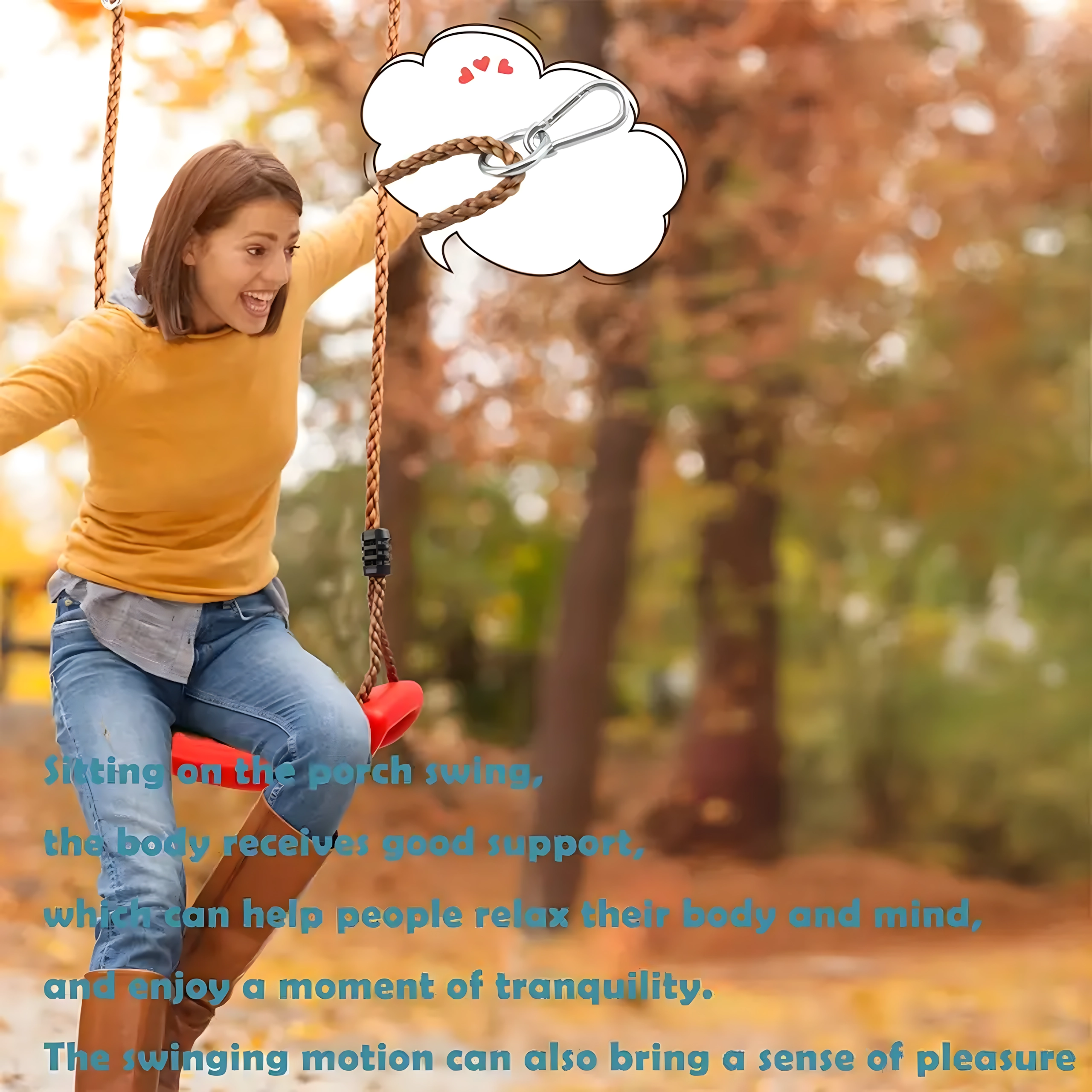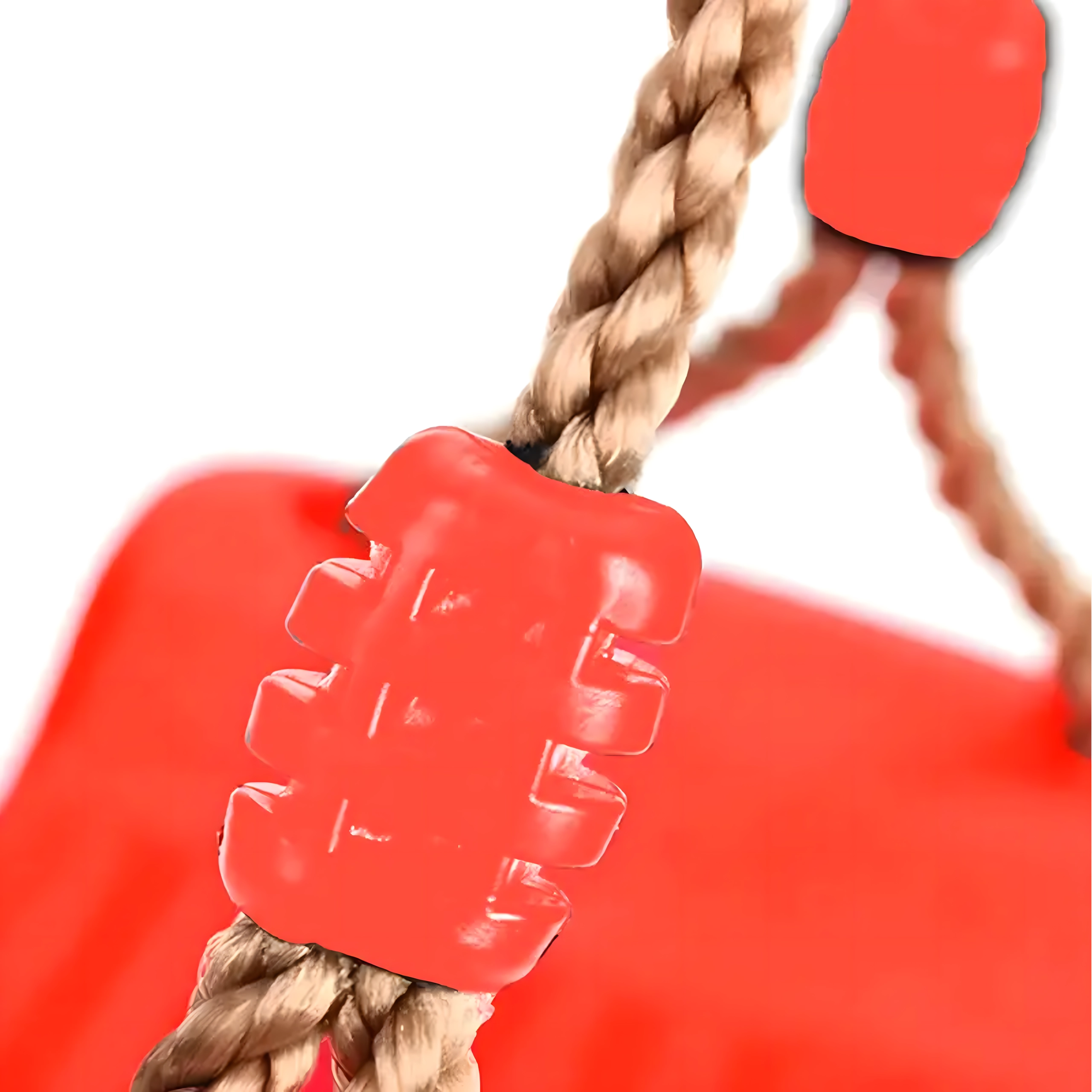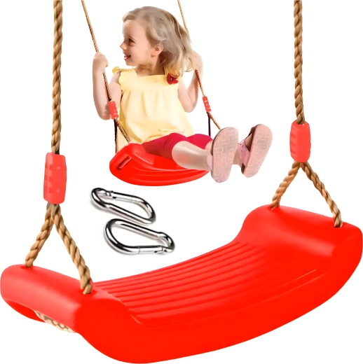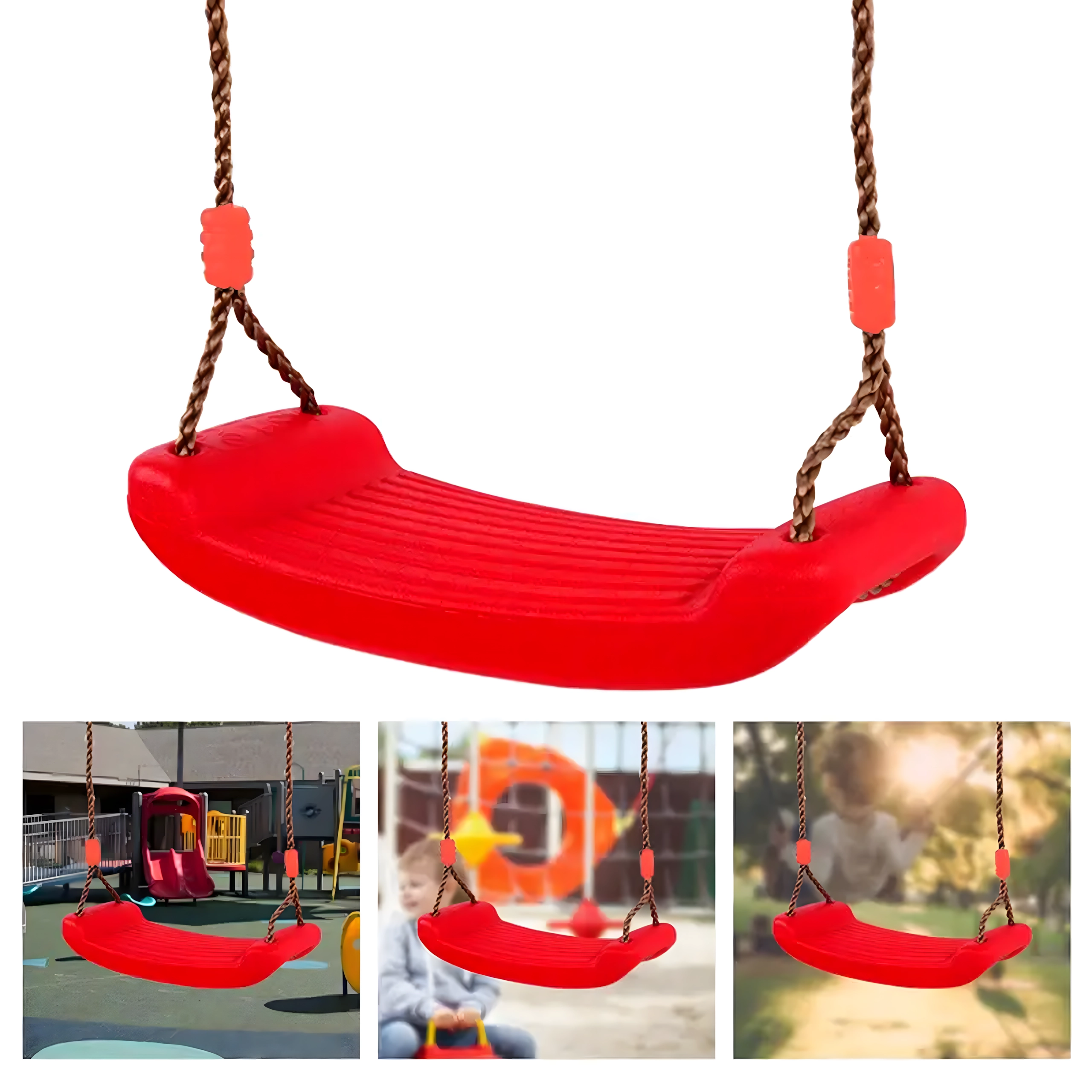 De hoogte is traploos verstelbaar met behulp van kunststof gespen, zodat de schommel meegroeit met je kind en zich makkelijk aanpast aan verschillende ophangpunten – speeltoestellen, pergola’s of stevige boomtakken. Slijtvaste materialen zijn bestand tegen normaal weer en langdurig gebruik.