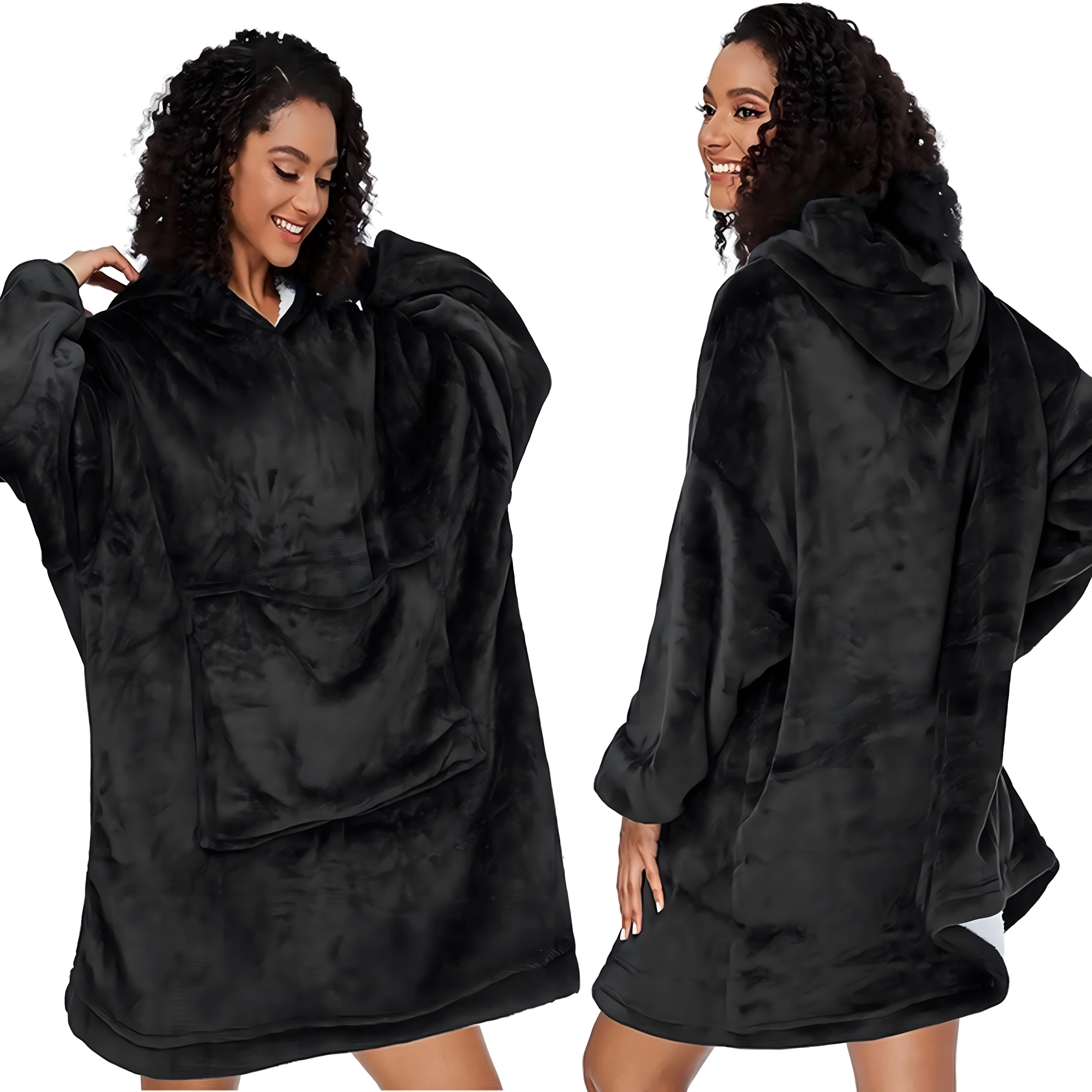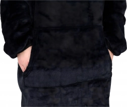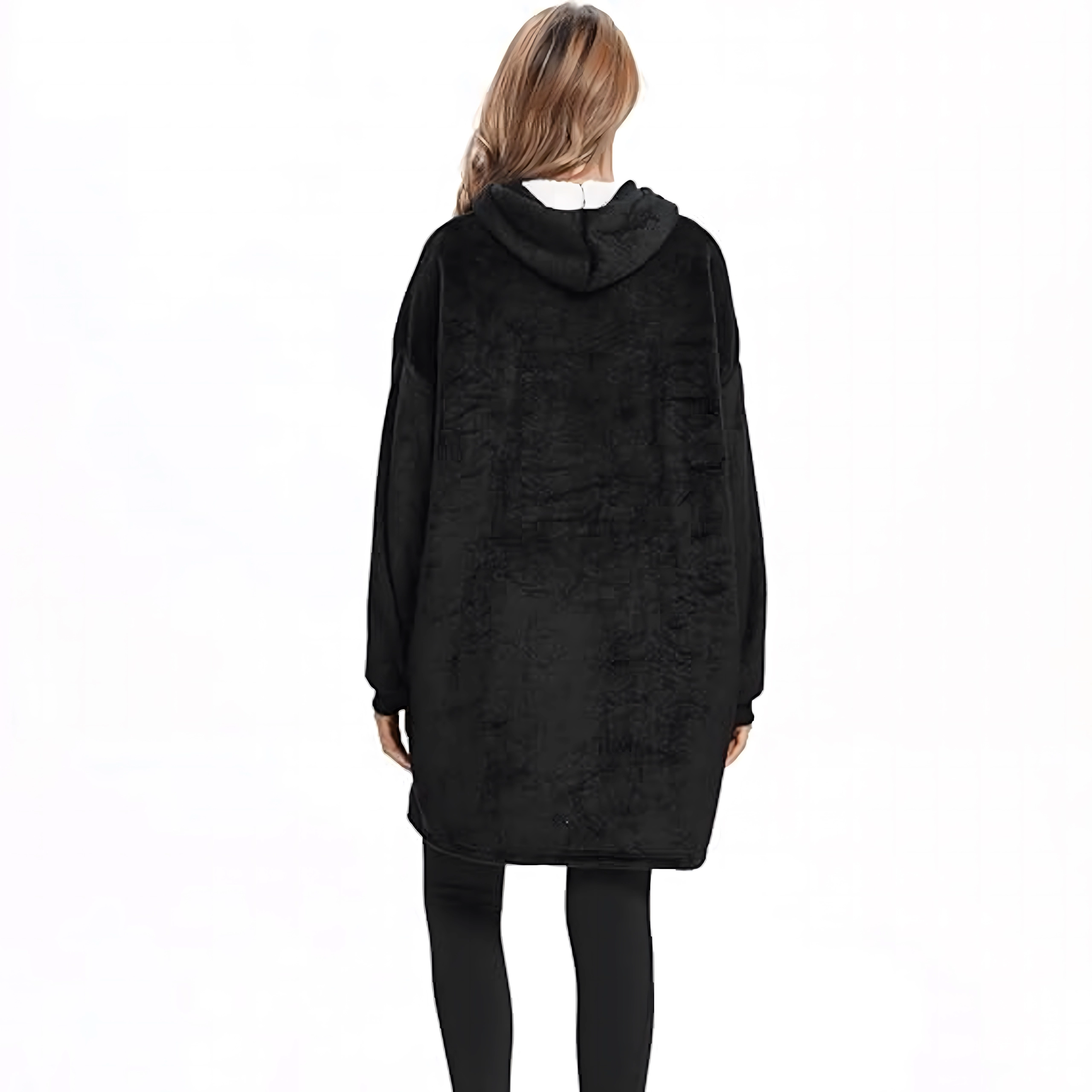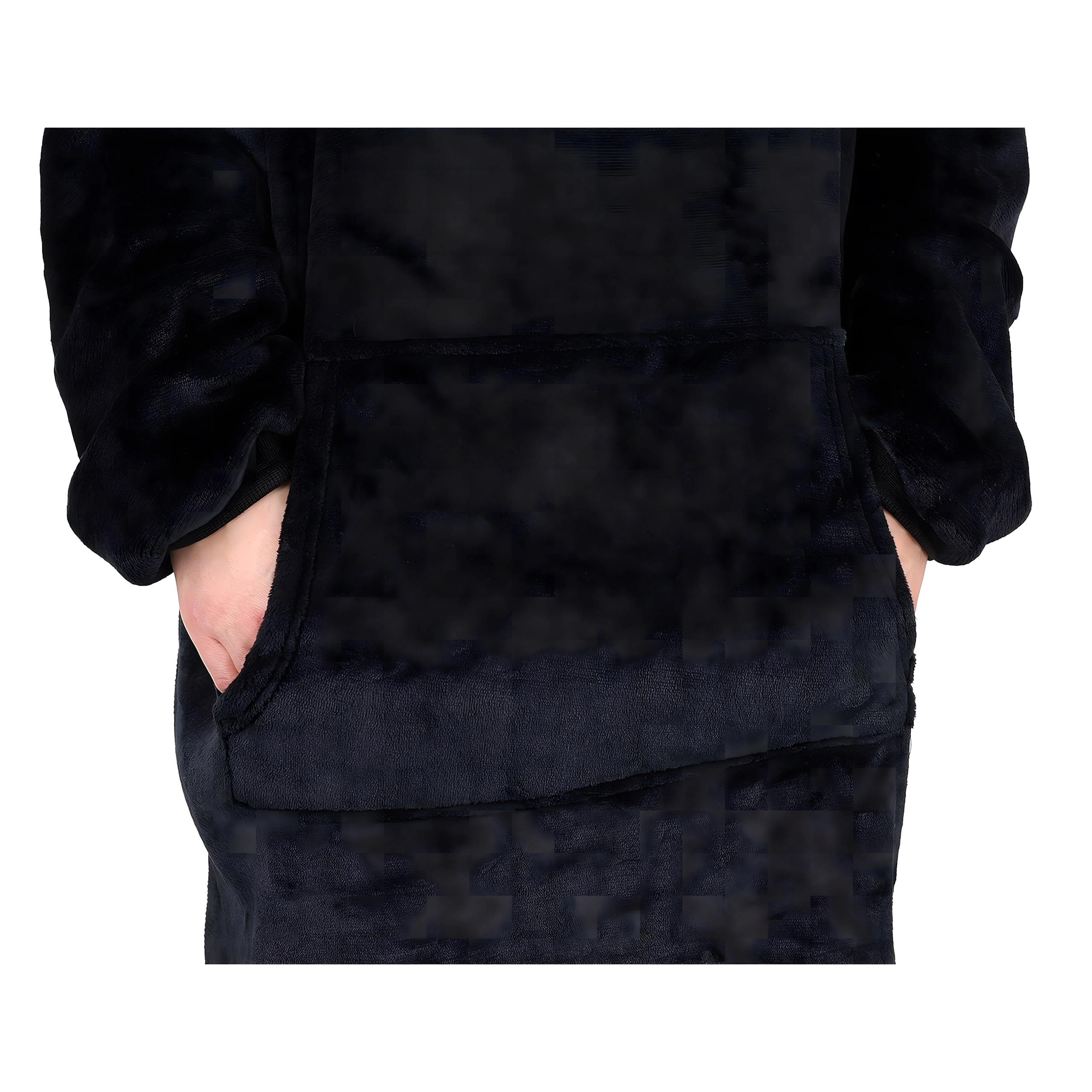 Dankzij de ruime capuchon en grote voorzak heb je alles wat je nodig hebt binnen handbereik en blijft je hoofd warm. De zwarte kleur is tijdloos en past gemakkelijk in ieder interieur. Ideaal voor luieren op de bank, boeken lezen en lange filmmarathons.