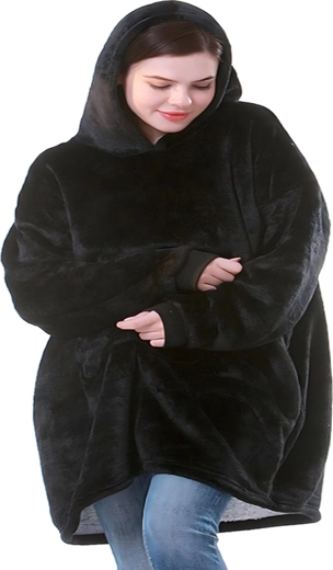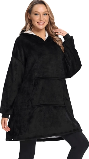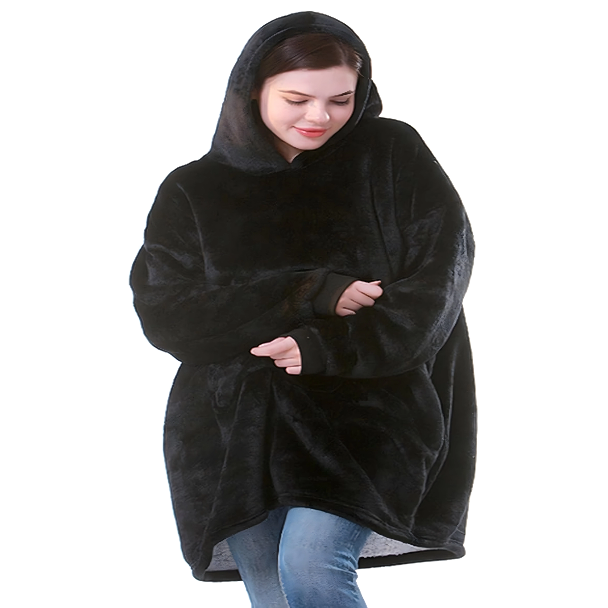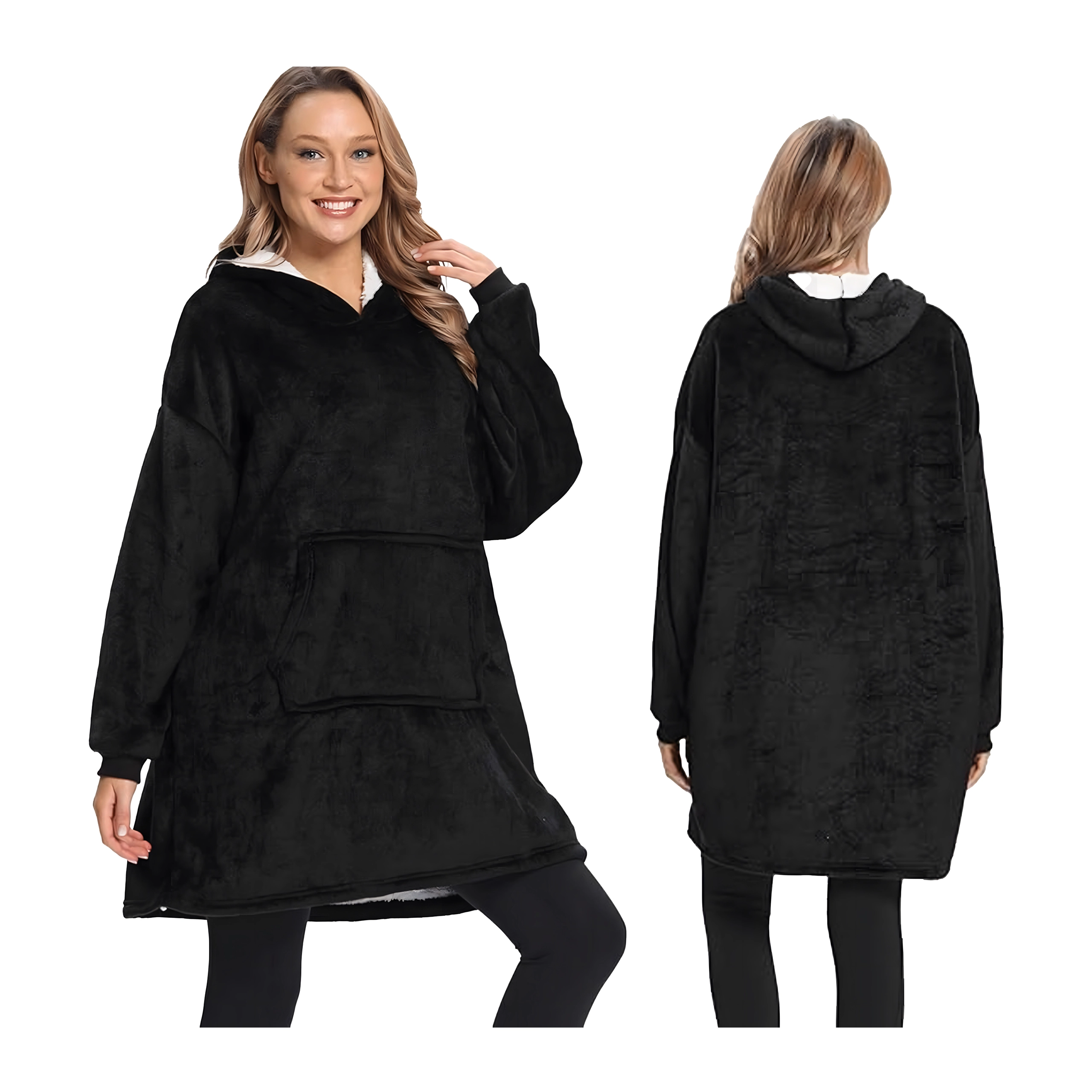 Dankzij de ruime capuchon en grote voorzak heb je alles wat je nodig hebt binnen handbereik en blijft je hoofd warm. De zwarte kleur is tijdloos en past gemakkelijk in ieder interieur. Ideaal voor luieren op de bank, boeken lezen en lange filmmarathons.