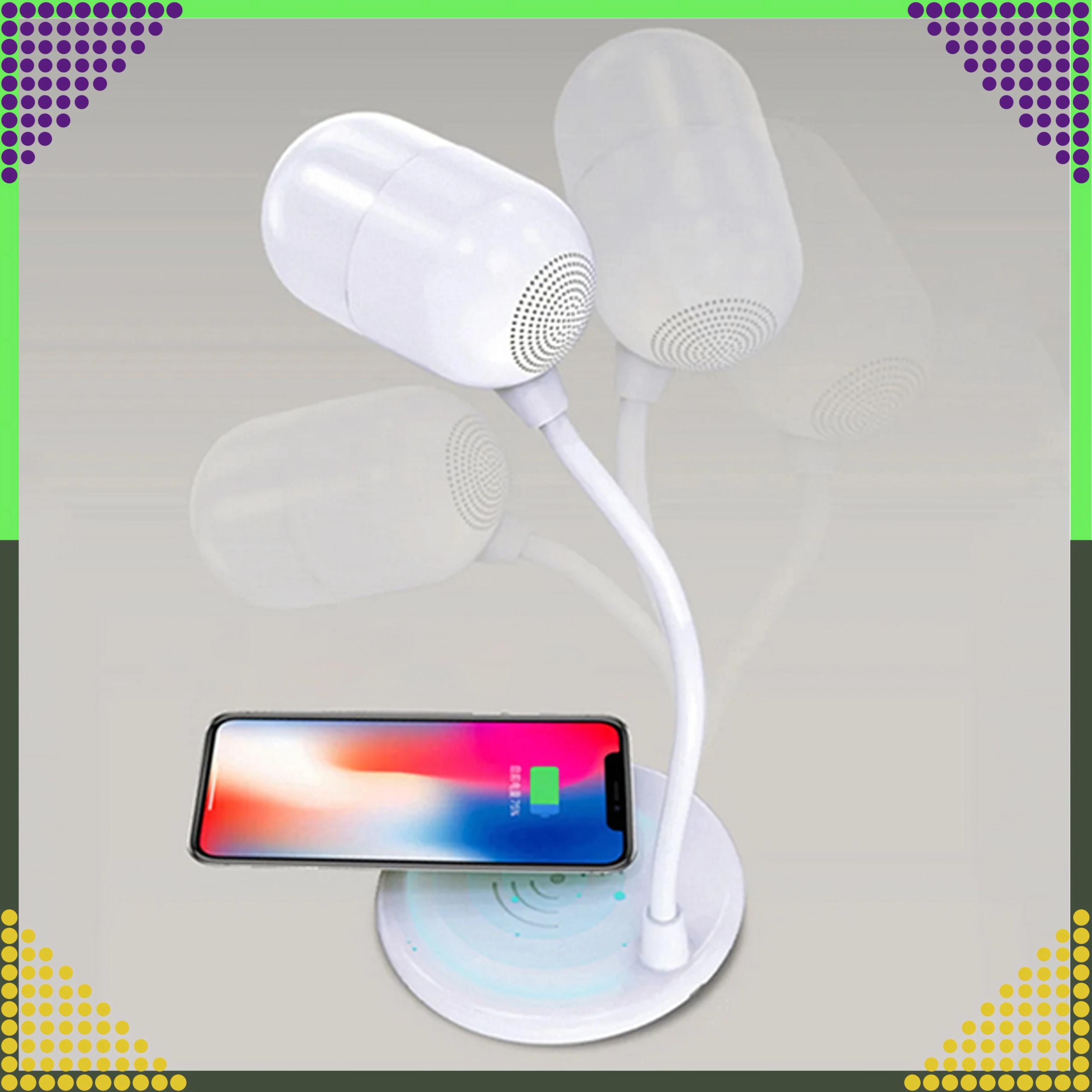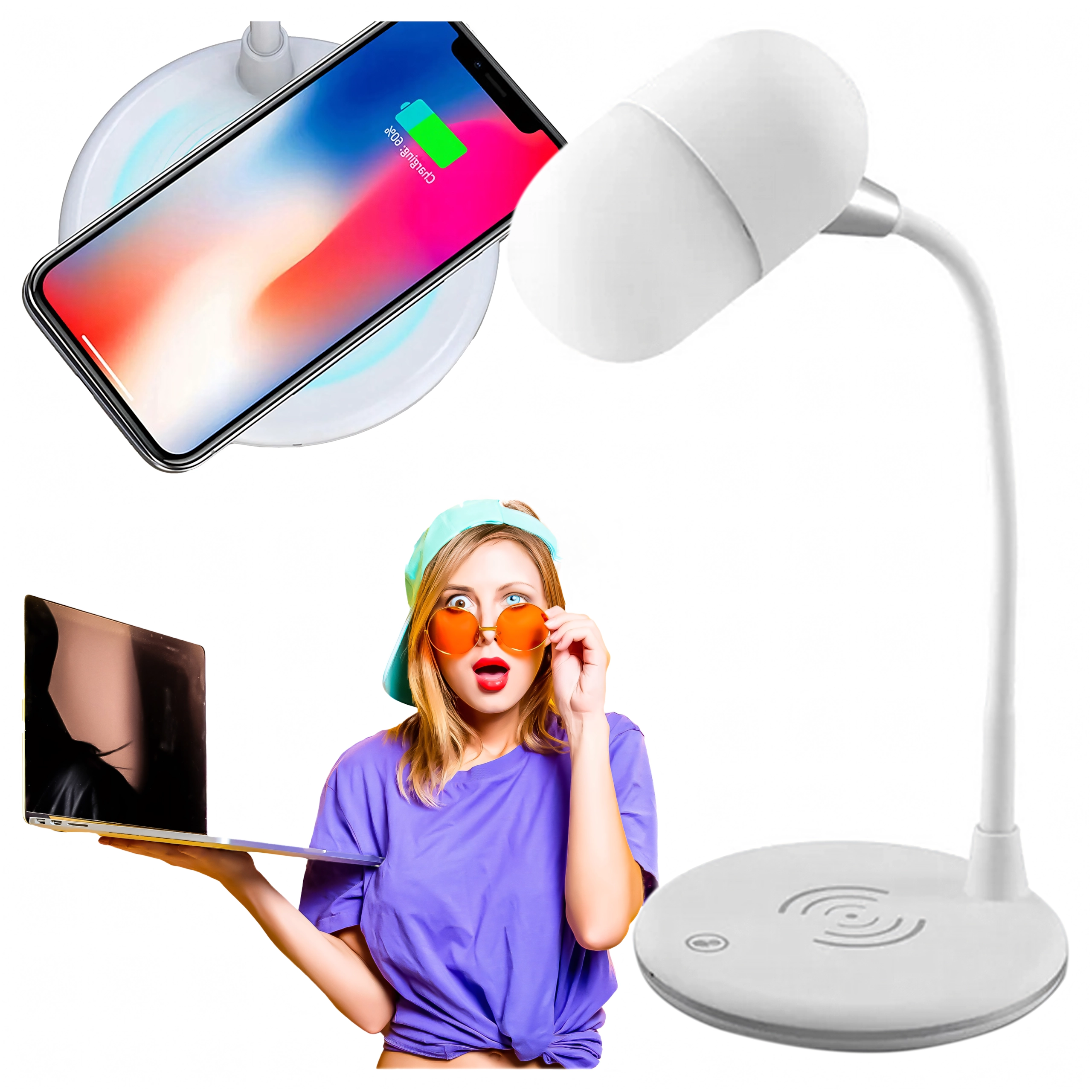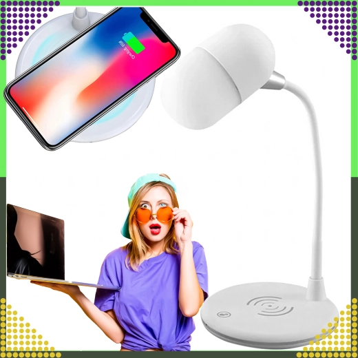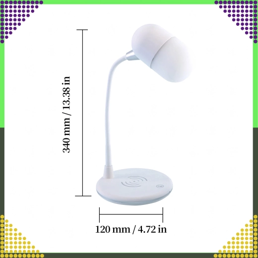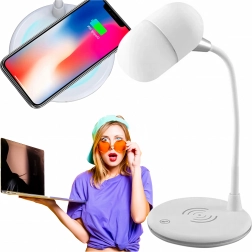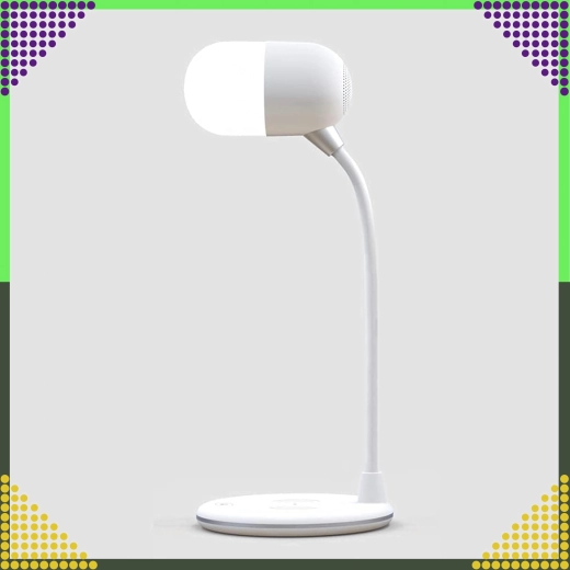 De 360° draaibare arm biedt maximale flexibiliteit – je stelt snel de optimale lichthoek zonder schaduwen in. Het elegante, universele ontwerp in het wit past perfect in moderne interieurs en helpt bovendien orde op je bureau te houden dankzij de combinatie van lamp, lader en speaker in één.