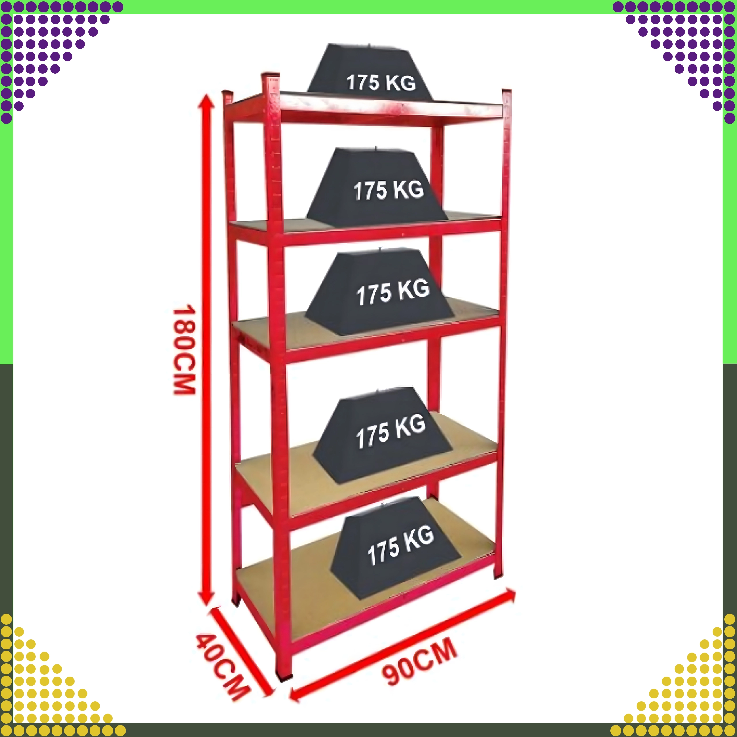 - Draagvermogen 875 kg voor het hele rek (175 kg per plank)