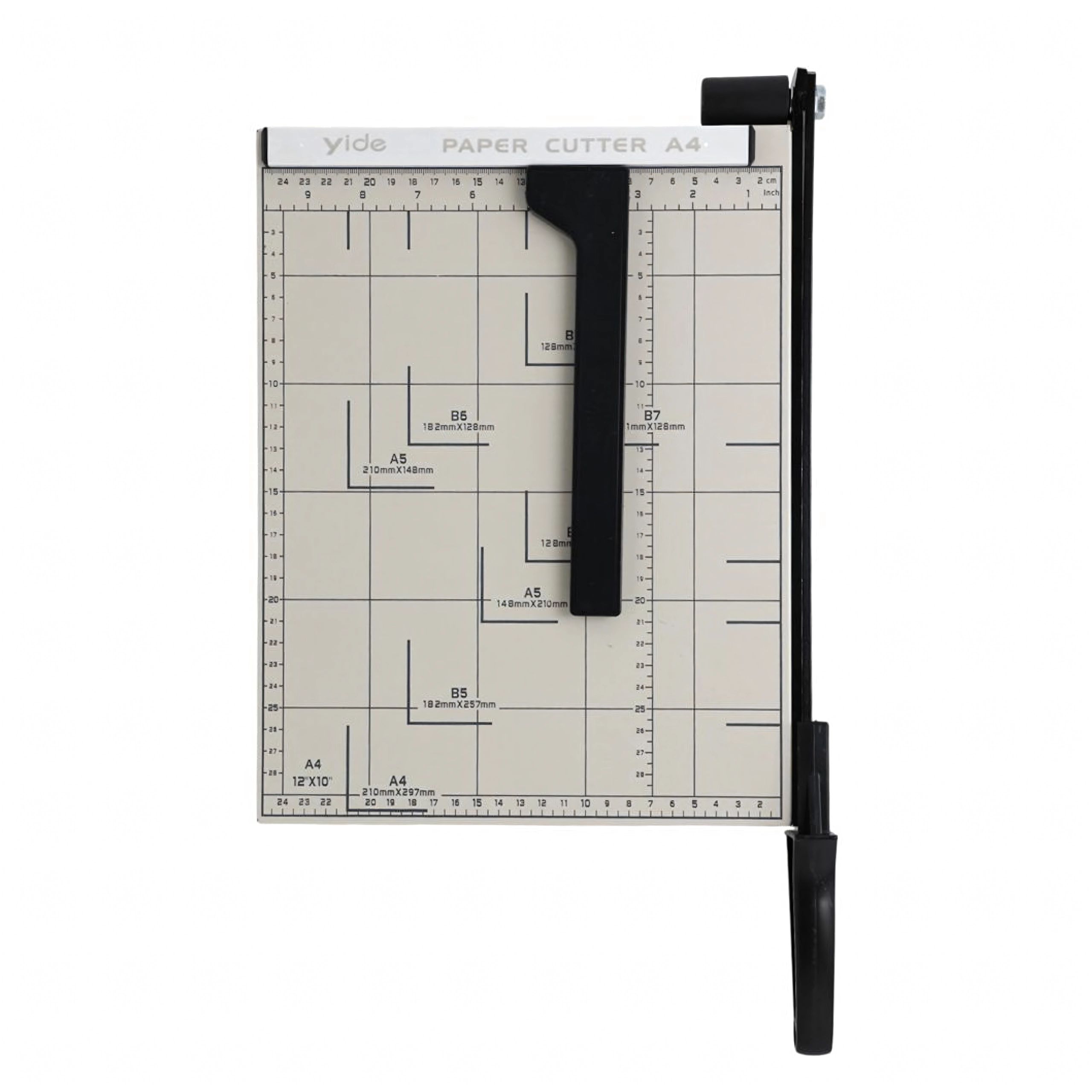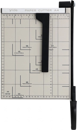 Geïntegreerde liniaal en markeringen voor A4, A5, B5 enz. versnellen het uitlijnen van papier en helpen perfect rechte sneden te bereiken.