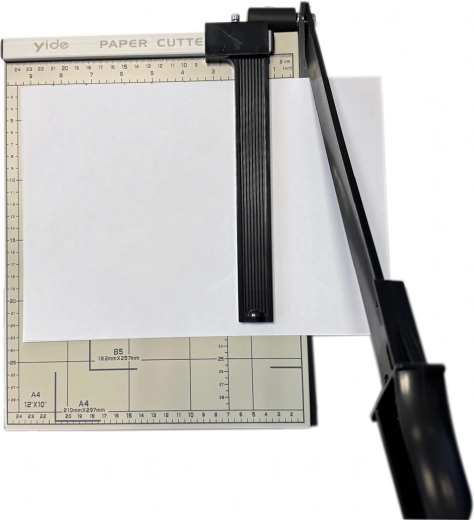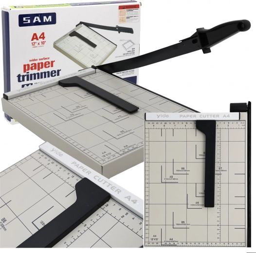 Deze robuuste papiersnijder maakt veilige en rechte sneden mogelijk dankzij het precisie-meetraster en de formaatmarkeringen (A4, A5, B5, enz.). De stevige metalen constructie en de hefboom met comfortabele handgreep zorgen voor een soepele werking en consistente resultaten bij het snijden van documenten, foto’s of presentatiemateriaal.